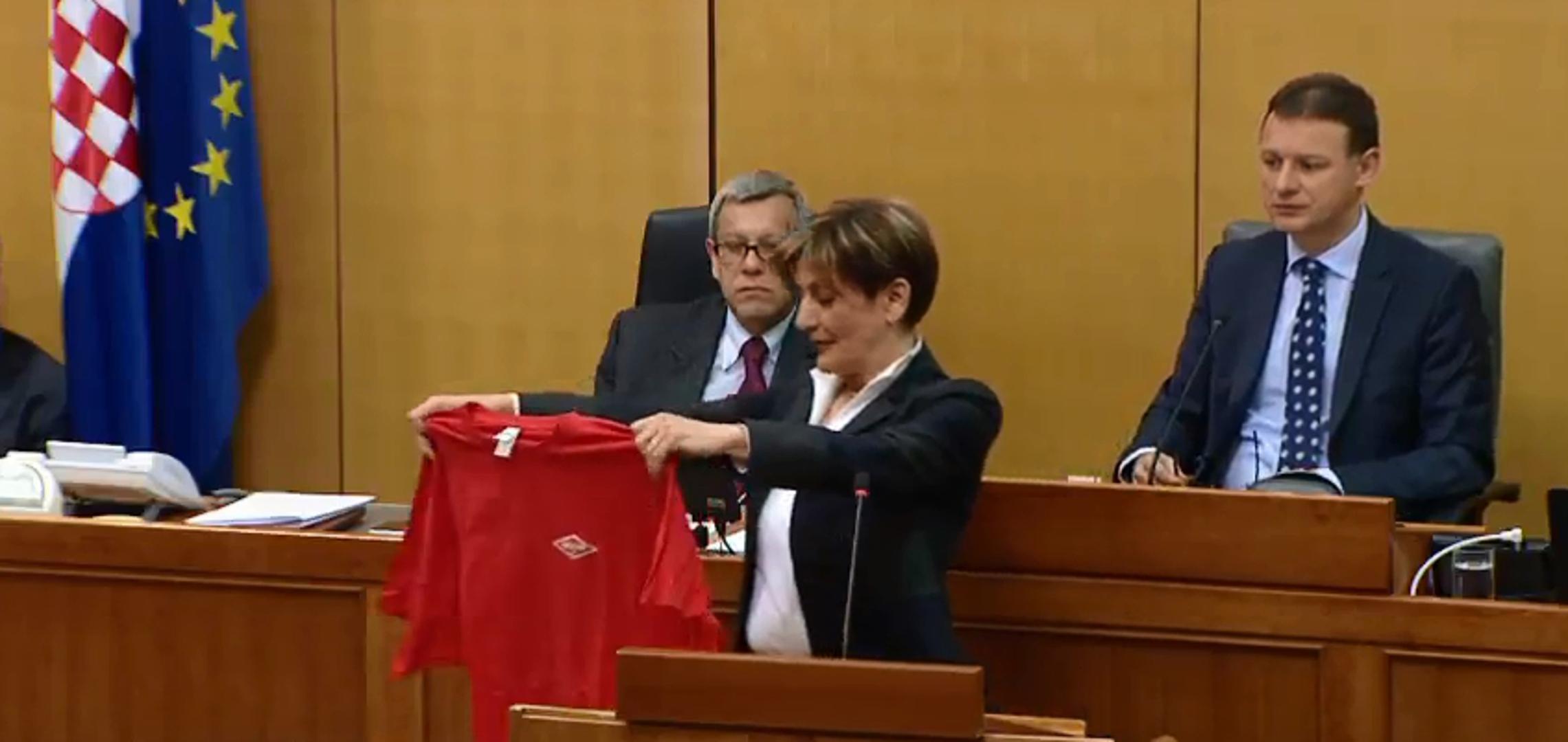 Crvena majica s logotipom Belja, kojom se pohvalila ministrica gospodarstva Martina Dalić u Saboru, dar je Nezavisnog hrvatskog sindikata te kompanije. Riječ je o najmanjem sindikatu u Belju s 15-ak članova. Najveći je PPDIV, koji ima oko 700 članova, a slijedi HUS, javlja Tportal.
