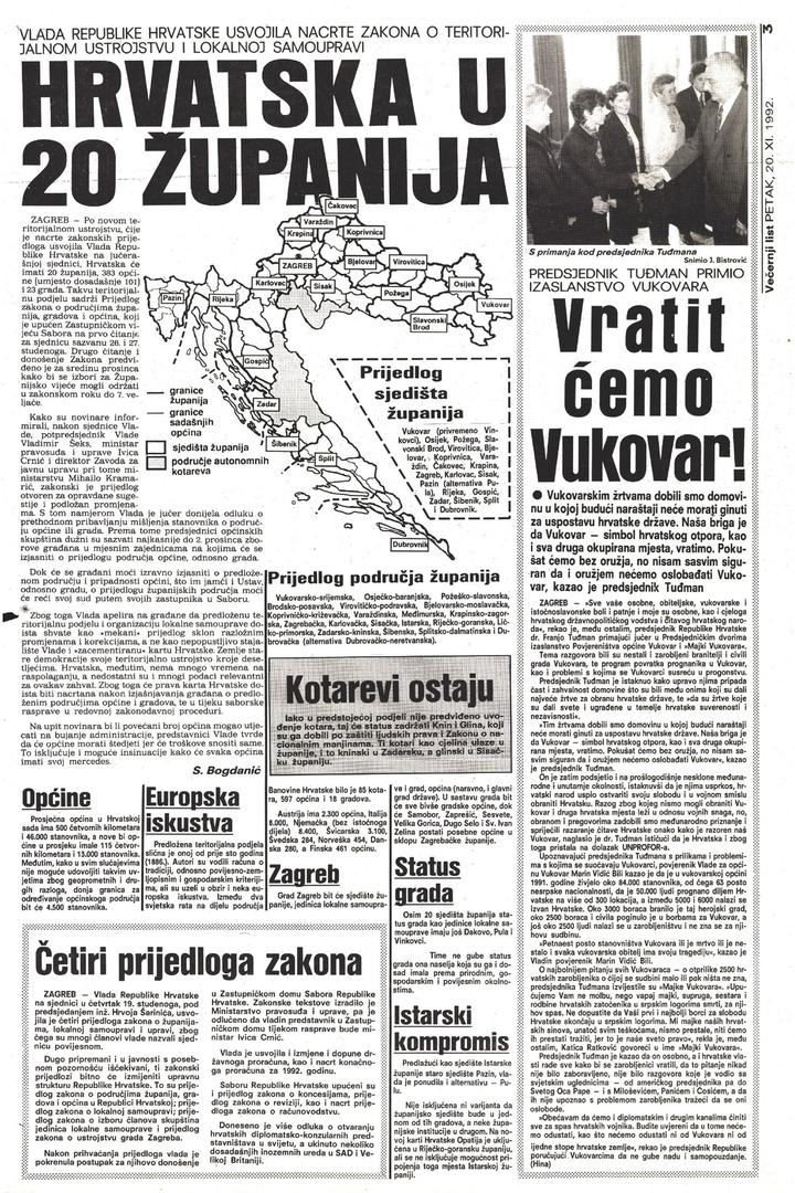 Zakonski je prijedlog, kako bilježi naša arhiva, bio otvoren za sugestije i podložan promjenama. Građani su se mogli izravno izjasniti o predloženom području i pripadnosti općini, odnosno gradu, a o prijedlogu županijskih područja mogli su reći svoj sud putem svojih zastupnika u Saboru. Iz Vlade su tada istaknuli kako će prava karta Hrvatske biti nacrtana tek nakon izjašnjavanja građana o predloženim područjima općina i gradova. U danima saborskih zasjedanja, koji su uslijedili, bilo je brojnih prijedloga i primjedbi na Prijedlog zakona o područjima županija, gradova i općina, bilo je i polemika i međusobnog prepucavanja, zbog čega je tadašnji predsjednik Sabora, Stjepan Mesić, upozorio zastupnike da za govornicom ne vode predizbornu kampanju.