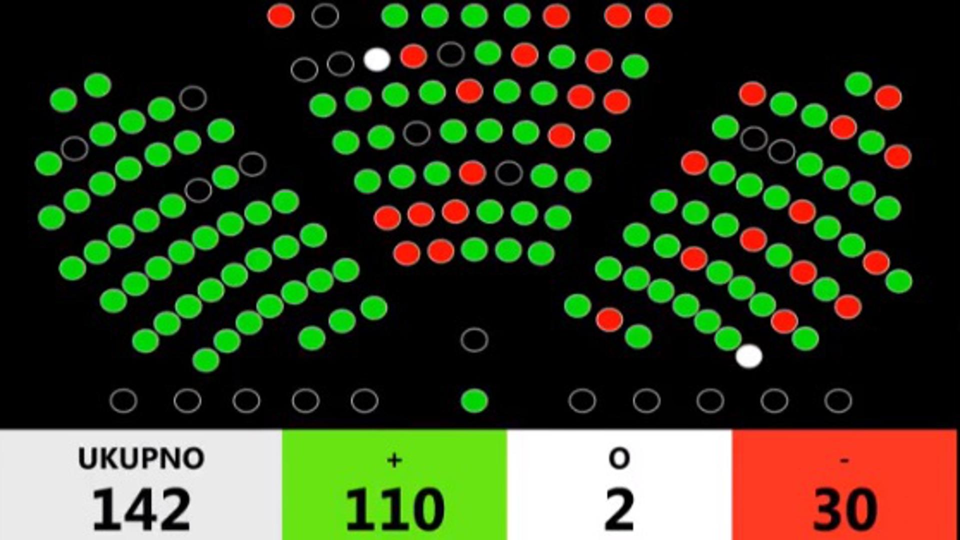 Za ratifikaciju Istanbulske konvencije bilo je 110 osoba, protiv je bilo 30, dok su 2 zastupnika bila suzdržana