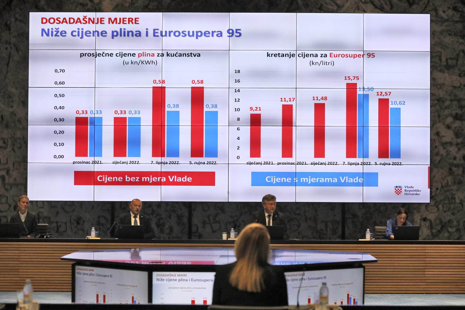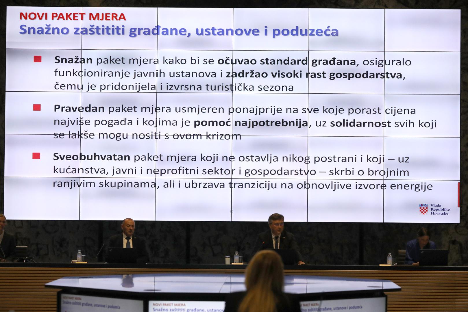 Vlada je na sjednici u četvrtak predstavila jesenski paket mjera za zaštitu kućanstava i gospodarstva od rasta cijena u ukupnom iznosu od 21 milijarde kuna, koji sadrži mjere zaštite od rasta cijena energenata i hrane te brojne subvencije i pomoći za građane, javni i privatni sektor.
