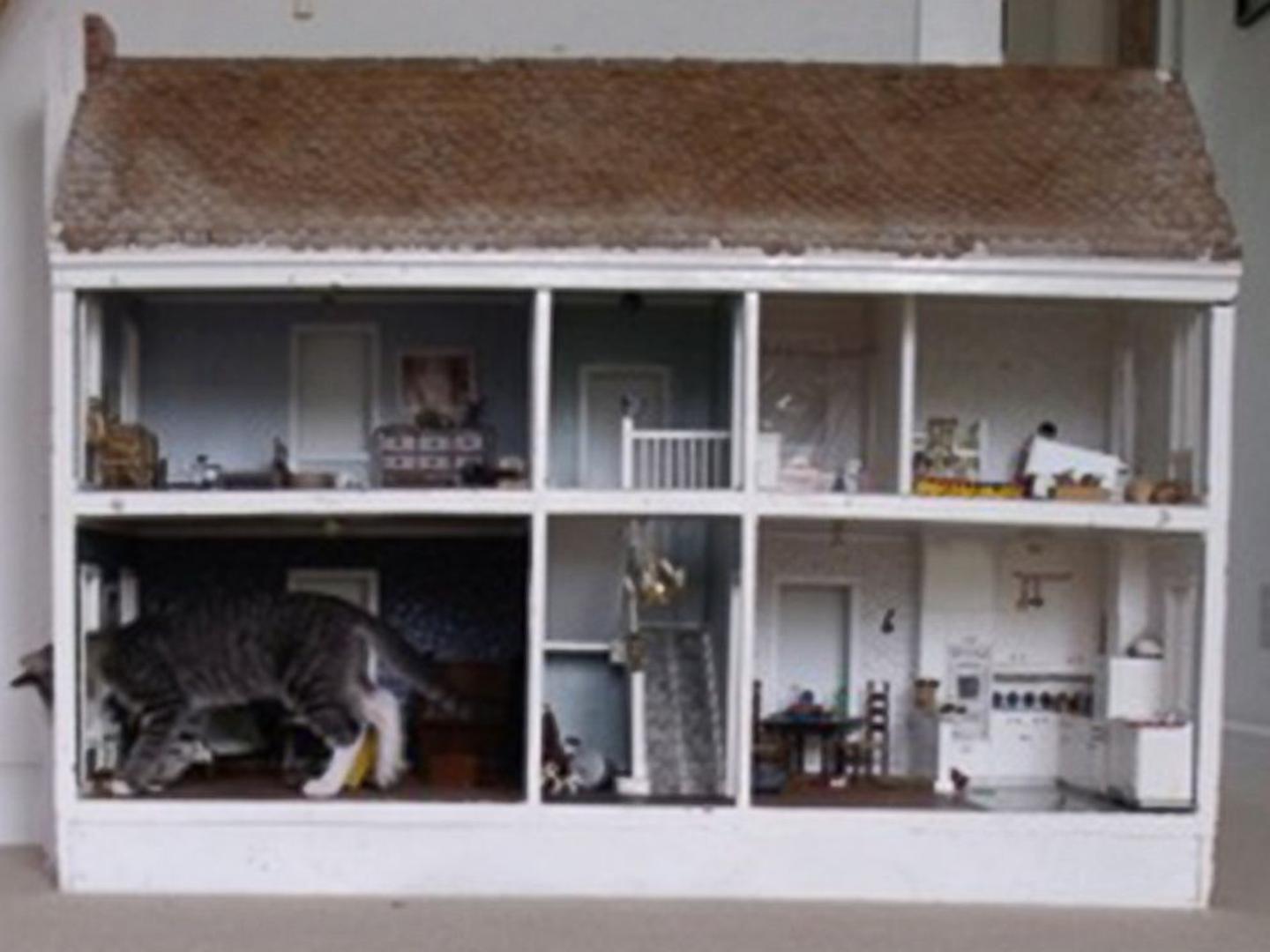 No, na njihovo razočaranje, mačka s fotografije je stvarne veličine i nalazi se u kućici za lutke. Fotografija je nastala prije nekoliko godina i služila je u kampanji za udomljavanje mačića.