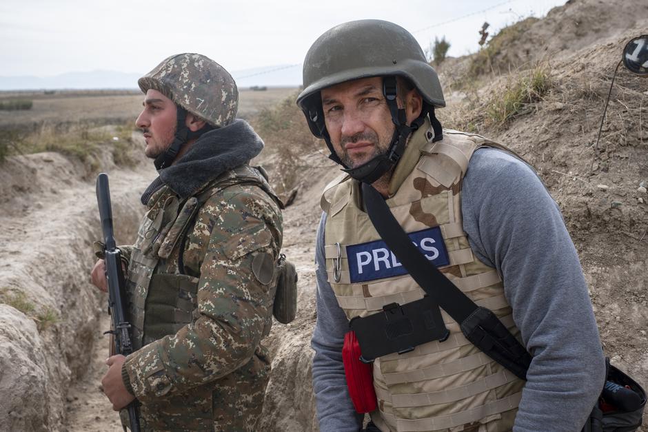 Rekoh: “Arthure, ako nas kojim slučajem ovaj bayraktar i promaši, ti ćeš nas ubiti, sigurno.“ Riječi su, kao i razum, ostale iza nas, u oblaku prašine i buke. Stisnuo je gas do kraja, pa dok izdržljiva Lada Niva izdrži. Događalo se ovo i prije, ali svaki sljedeći dan neprijatelj je sve bliže zatvaranju koridora, a strah i nervoza sve veći. U svem tom metežu pokušavam zakopčati pancirku, staviti šljem, izvaditi karticu iz mobitela, uzeti fotoaparat. Sve bez uspjeha. Odustajem. Držim se za sjedala dok prelijeće preko pontonskog mosta. Jednog. Drugog. Siječe okuke. Proklizava makadamom. Izbjegava ovce i vozila hitne pomoći koja nalijeću iz suprotnog smjera. Bezglavo, pod rotirkama, jednako suludo. Svako malo procijedi: “Bože, pomozi.” Slavenski. U Armeniji se i Bog moli ruski. Ne trebam prijevod. Možda bi mi bilo lakše da nisam razumio. Ili mi je lakše što jesam? Ne znam. Nije puno toga preostalo. Ni više ni manje nego, Bože, pomozi.