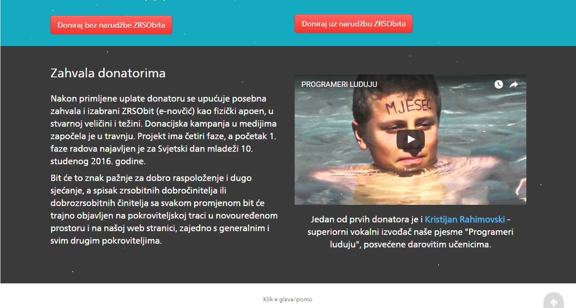 - Riječi potpore bile su nam osobito dragocjene. Stoga smo predsjednici države Kolindi Grabar Kitarović kao mali znak pažnje za prepoznavanje naših napora, uz čestitku o Božiću, dostavili i jedan primjerak od 100Zb (stotinu ZRSObita) i promidžbeni CD namijenjen darovitim programerima i matematičarima, rekao nam je predsjednik saveza, Rikard Dimić.