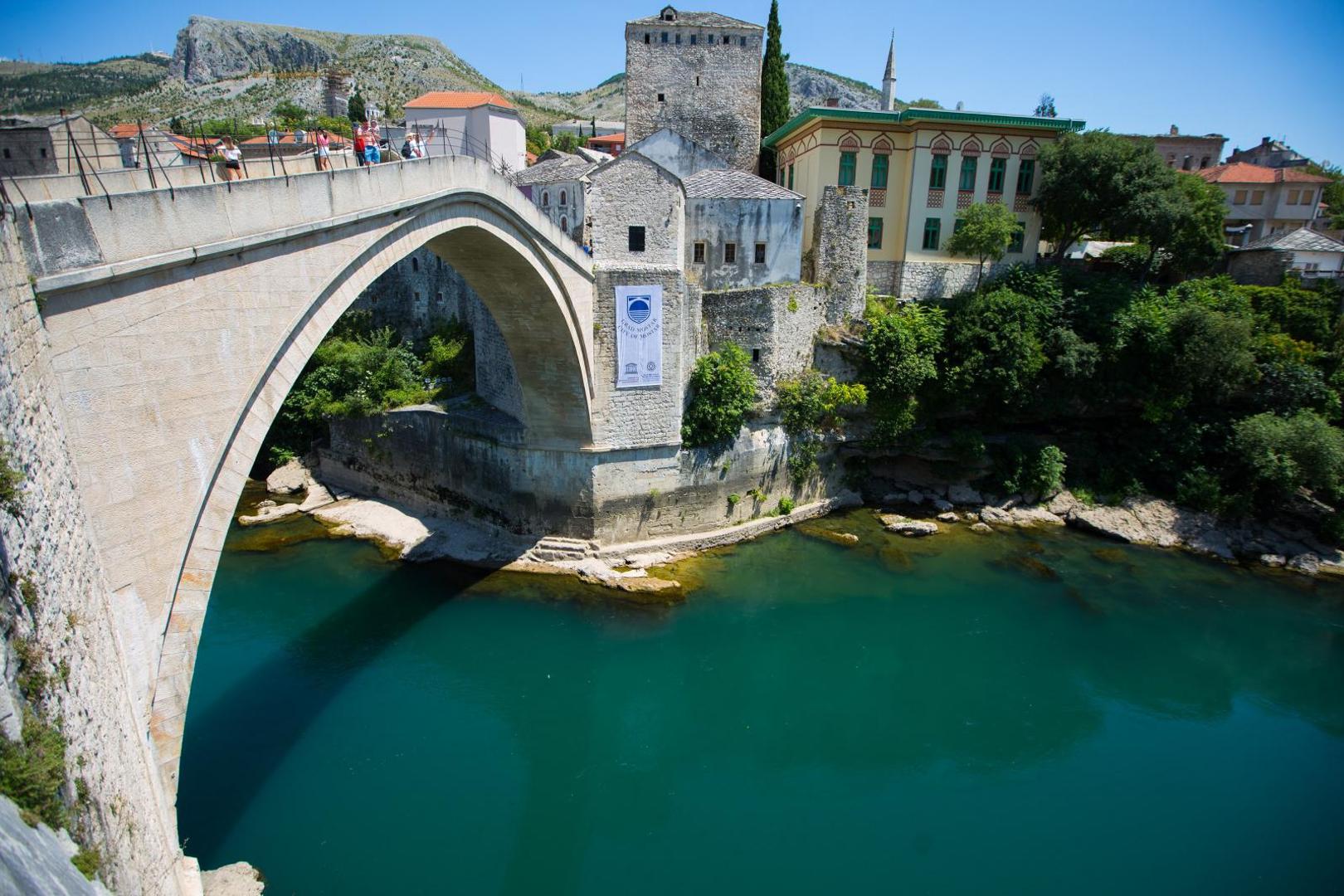 16.07.2020., Mostar, Bosna i Hercegovina - Prigodnim programom obiljezeno je petnaest godina od prijema stare gradske jezgre i simbola grada, Starog mosta, na prestiznu UNESCO-vu listu zasticene svjetske bastine. Photo: Denis Kapetanovic/PIXSELL