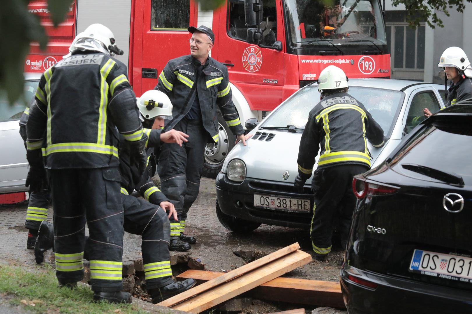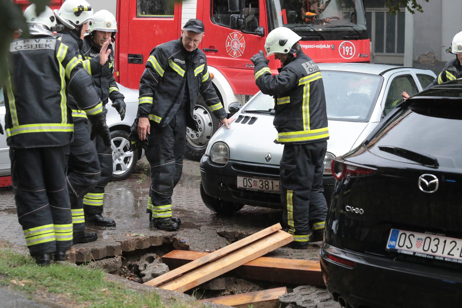 Dramatično u Osijeku: Vatrogasci izvlačili automobil pod kojim se otvorila rupa