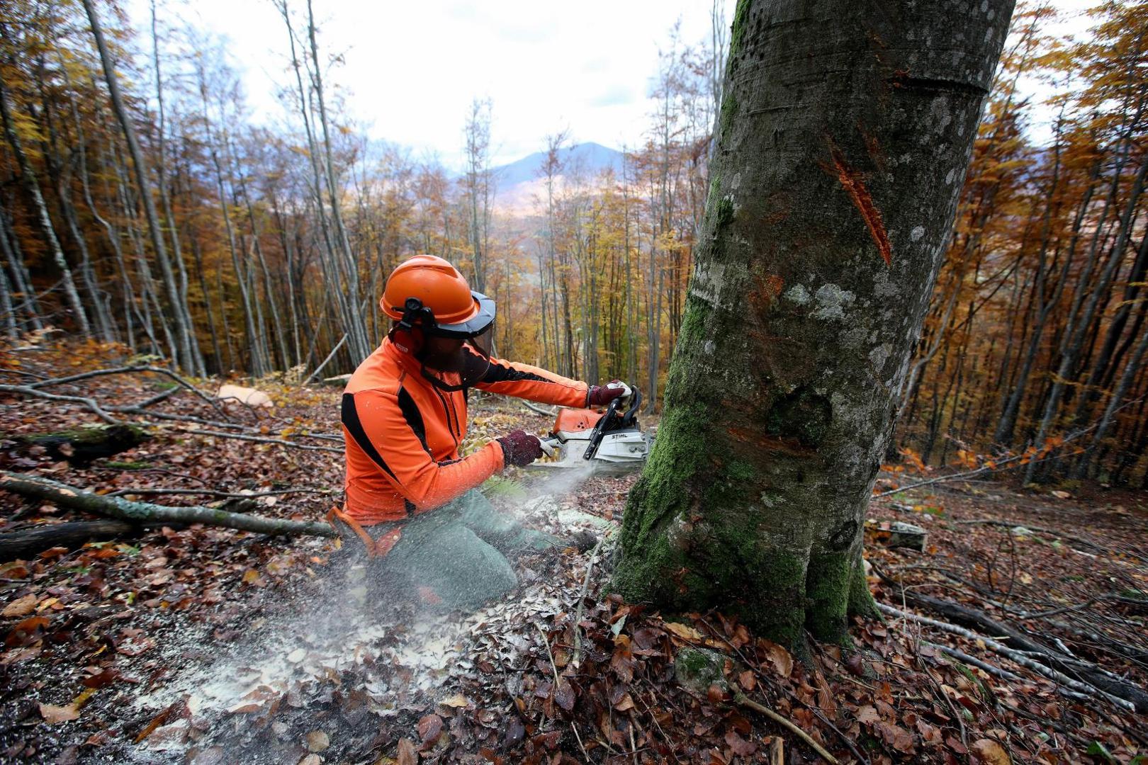 Dok se motamo oko Danijelova radnoga mjesta, pridružuje nam se i šumar Zvonko Ćorak, navlačeći na sebe alpinističku opremu za penjanje, kako bi se popeo na stablo i malenom električnom motorkom odrezao grane stabala koje bi mogle smetati u radu žičare. Njegova se oprema sastoji od penjačkih hlača i jakne, koji imaju specijalne mrežice od tvrde plastike. Ta je zaštita dovoljna da zaustavi lanac motorne pile dogodi li se da nešto krene po zlu.