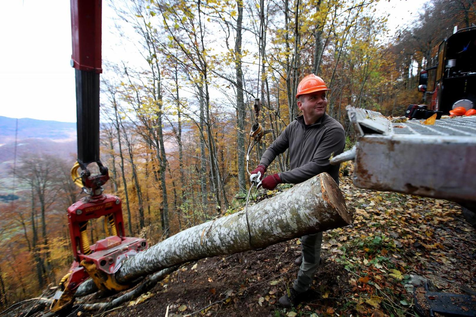 Jesen je tek počela širiti svoje mirise, a vjetrić je u kolo zavrtio lišće. Zeleno, žuto, crveno... prolazilo nam je ispred očiju dok smo s inženjerom šumarstva Tomislavom Kranjčevićem sjedali u terenac ispred uprave šumarije u Karlovcu. Pridružuje nam se tu i krhka Lucija Vargović, mr. sc. ing. šumarstva. Lucija i Tomislav bit će naši domaćini koji će nas dva sata kasnije upoznati s drvosječama 21. stoljeća, ljudima koji kubike trupaca “krote” pritiskom na gumb, upravljajući šumskom žičarom kojom se s nepristupačnog terena izvlače drva, radeći tako elegantno posao koji su nekoć radili traktori, a prije toga konji.