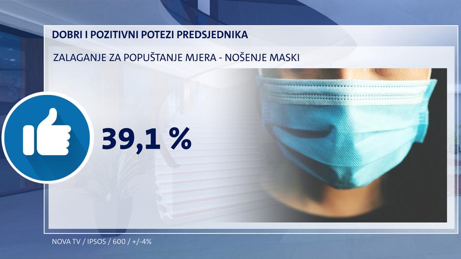 Zalaganje za popuštanje mjera u COVID krizi podupire 39,1 posto ispitanika. Najviše mladi, u Dalmaciji te birači MOSTA, ali nema takvu potporu kod birača ostalih stranaka. Na trećem mjestu je kritiziranje rada ministra obrane, što podupire 28,1 posto birača. Nešto veću potporu ima u Zagrebu te na Jadranu, očekivano u oporbi, ali samo 14 posto HDZ-ovaca ga podupire.