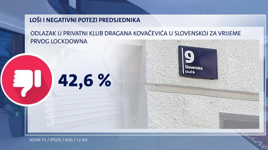Posjet klubu u Slovenskoj tijekom zatvranja najviše zamjeraju Predsjedniku, 42,6 posto ispitanika. Najviše među mladima ima protivnika za ovakav izlet. Među visokoobrazovanim te i u Istri i na Kvarneru, ali i među biračima MOŽEMO! i Mosta.