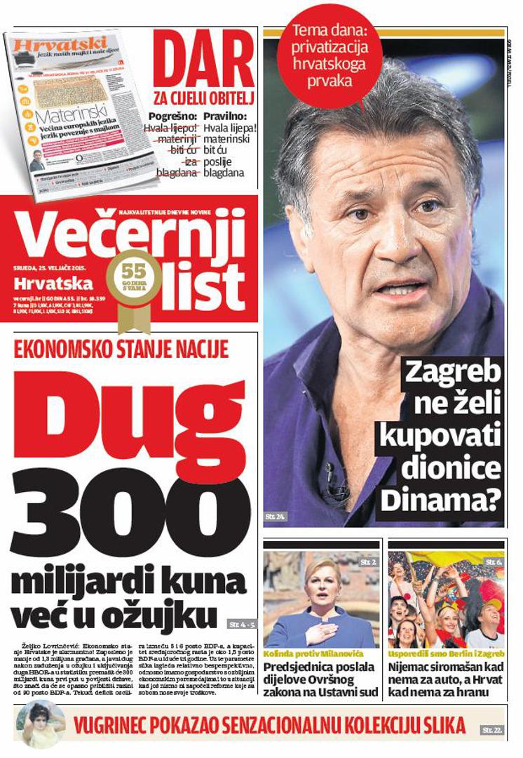 Za Večernji list još jednom opominje sadašnju i buduću Vladu da živi “na posuđenu vremenu”, što je neodgovorno prema građanima i budućim generacijama.