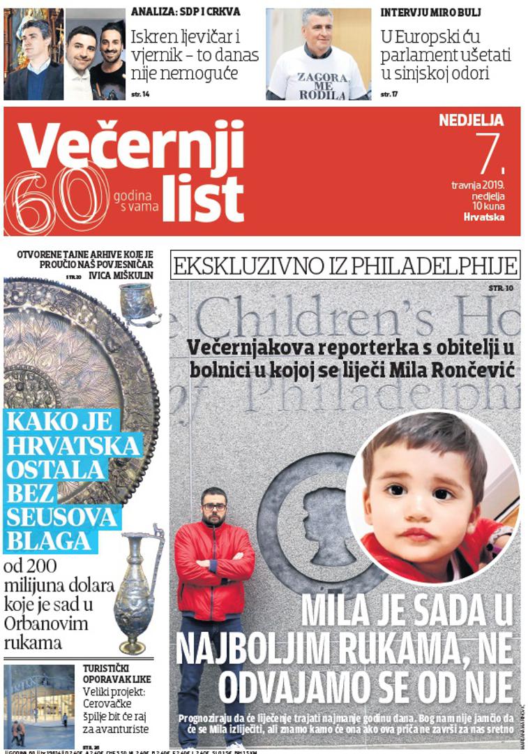 Mila je u najboljim mogućim rukama, a supruga i ja se ne odvajamo od nje. Skoknuli smo nakratko odvojeno do obližnje hotelske sobe, ali smo stalno uz naše dijete. Malena se osjeća dobro i ništa ne utječe na njezino raspoloženje, igra se, pjeva i pleše u sobi. Sa svih strana svijeta pristižu joj darovi: dobila je toliko plišanih igračaka, medvjedića, bubamara i čestitki za ozdravljenje, a i od bolničkog osoblja je također dobila igračke, dječje karte, bojice i pastele, kao i mali tablet za gledanje crtića. Ovo je doista najbolje što smo mogli dobiti jer su svi toliko posvećeni ozdravljenju malih pacijenata, njihov je pristup sveobuhvatan, holistički, ne uključuje samo liječenje nego i igru i edukaciju. U dogovoru s nutricionistom napravljen joj je poseban režim prehrane, tako da jede dosta organskog i egzotičnog voća, jako voli voćne kašice i svježe cijeđene sokove, pije organsko mlijeko, a dopušteno joj je jesti i pohano meso, koje je i vrlo ukusno i vrlo kalorično – rekao nam je Marin Rončević, otac dvogodišnje djevojčice Mile Rončević, kada smo ga u petak posjetili u Dječjoj bolnici (Children’s Hospital) u Philadelphiji.
