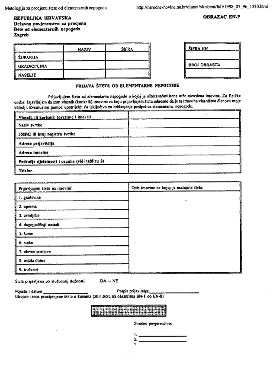 1. Šteta se prijavljuje na obrascu EN-P;