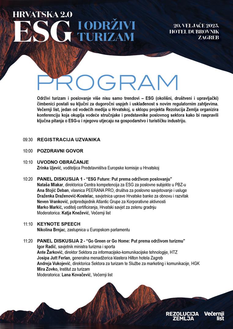 Kroz ova dva panela, konferencija donosi konkretne odgovore i praktična rješenja za održivo poslovanje i turizam, pomažući sudionicima da bolje razumiju izazove i prilike koje ESG donosi. Sponzori konferencije su Hrvatska gospodarska komora i Hrvatska turistička zajednica.