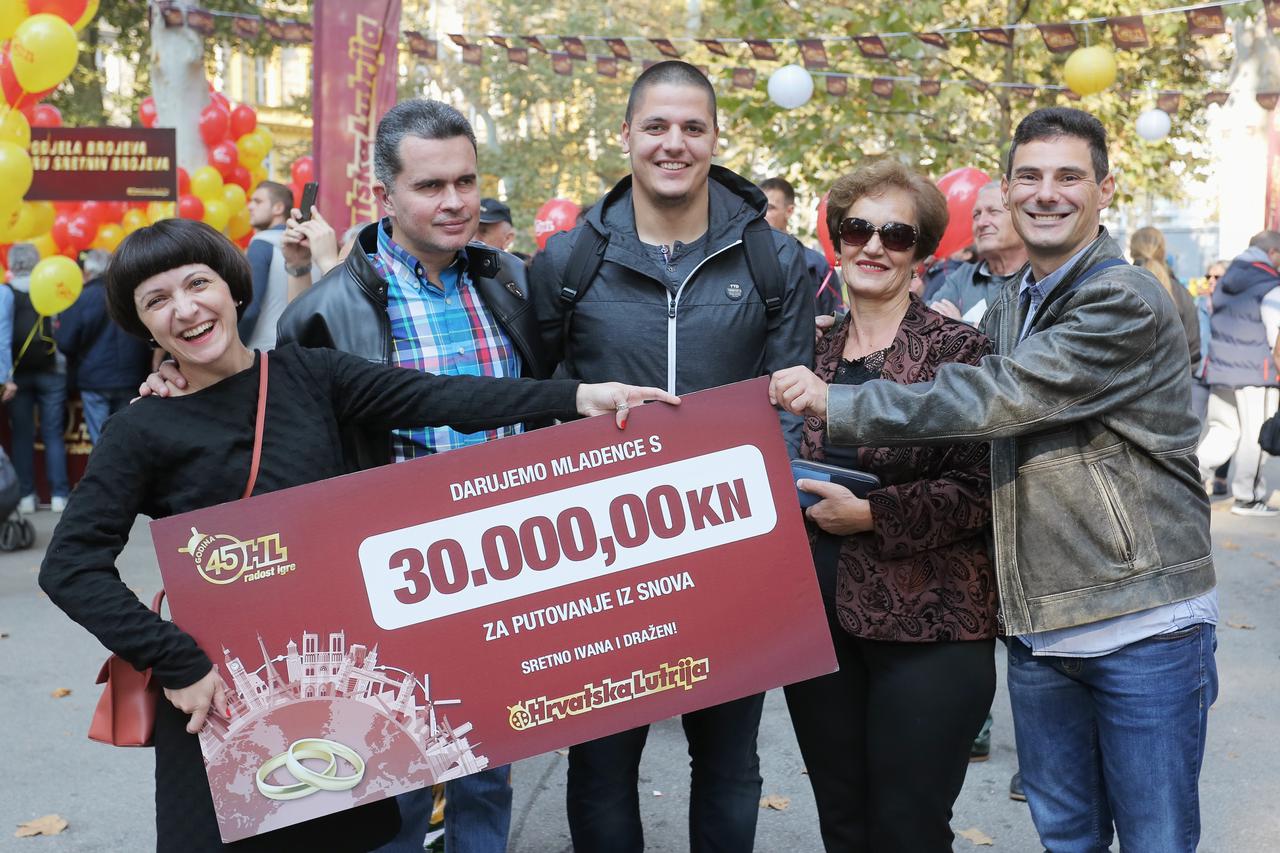 – Uključuje to aviokarte i tri noćenja – objasnila je Ana Jazić, glasnogovornica i voditeljica Službe za korporativne komunikacije i društveno odgovorno poslovanje u Hrvatskoj lutriji, koja je vaučerom za putovanje od 30 tisuća kuna na Zrinjevcu iznenadila i jedan mladi bračni par.