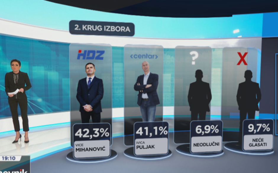 Ako u drugi krug zaista uđu Vice Mihanović (42,3 posto) i Ivica Puljak (41,1 posto), razlika između njih dvoje iznosila bi tek 1,2 posto te je najizglednije da će 6,9 posto neodlučnih odrediti novog gradonačelnika.