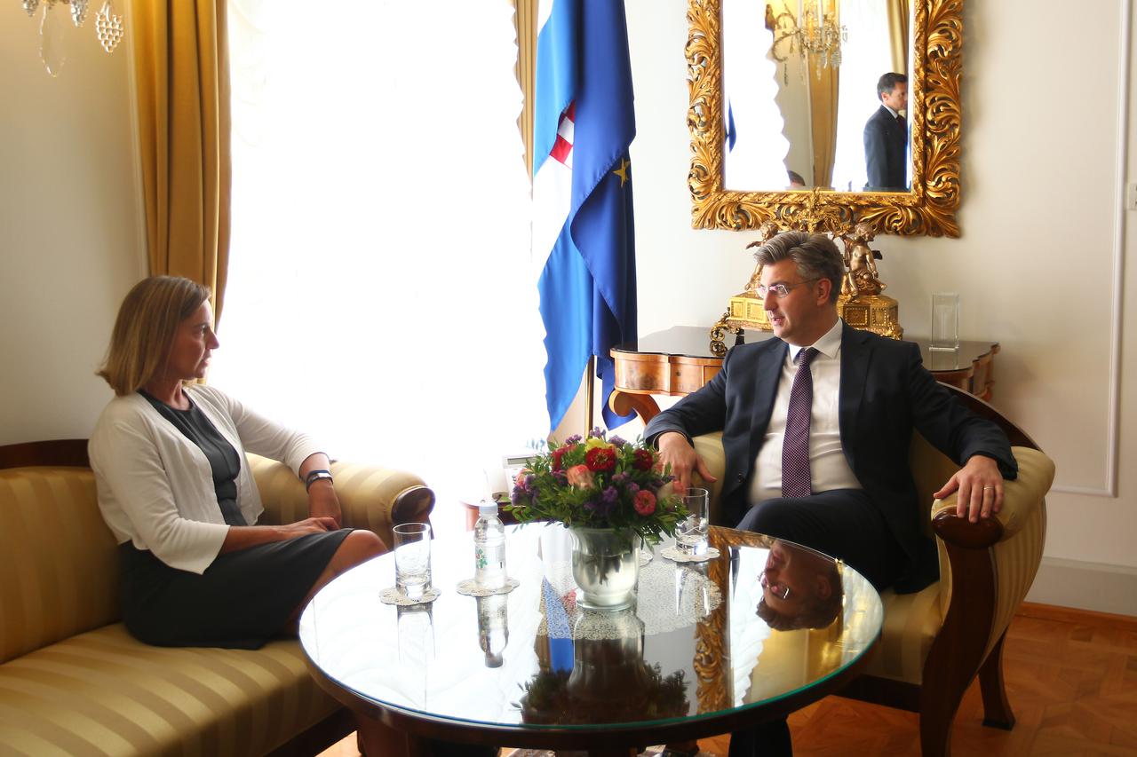 Mogherini se sastala i s ministrom obrane Damirom Krstičevićem koji ju je upoznao s izradom Strategije nacionalne sigurnosti, koja je usvojena u Hrvatskom saboru, naglasivši važnost prilagodbe zemalja novim sigurnosnim izazovima. Mogherini se i s premijerom Andrejem Plenkovićem te s predsjednicom Kolindom Grabar-Kitarović.