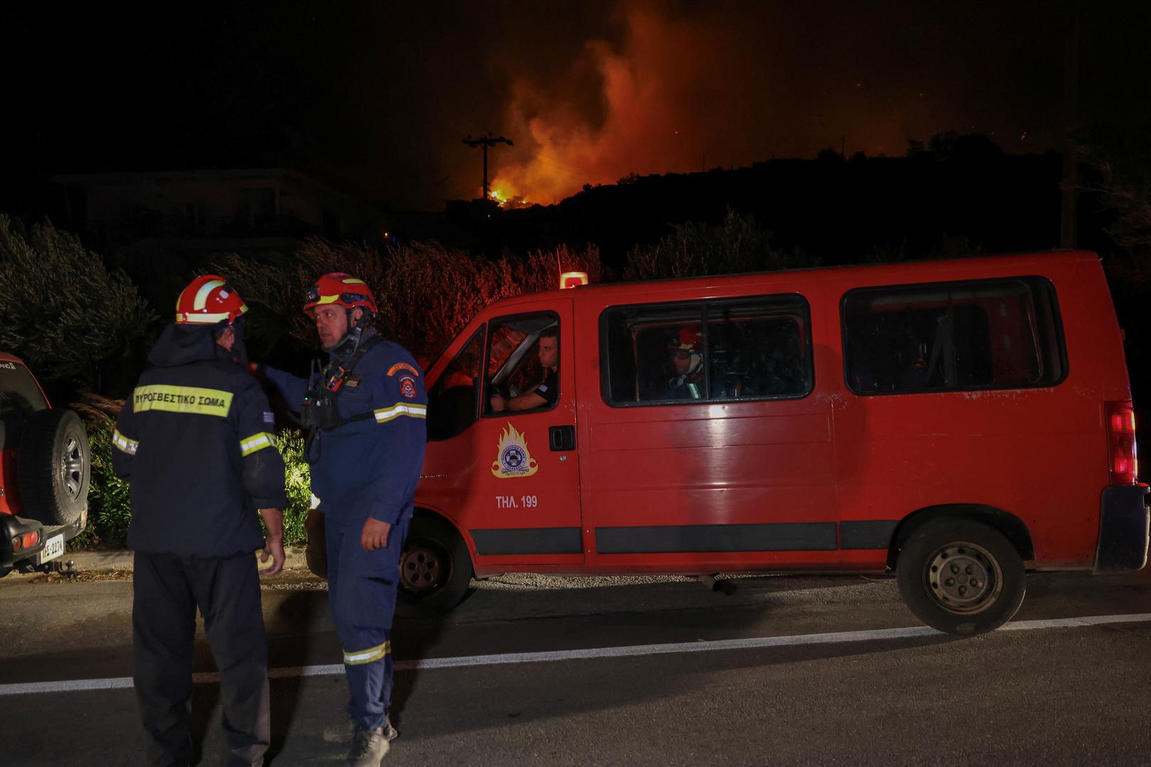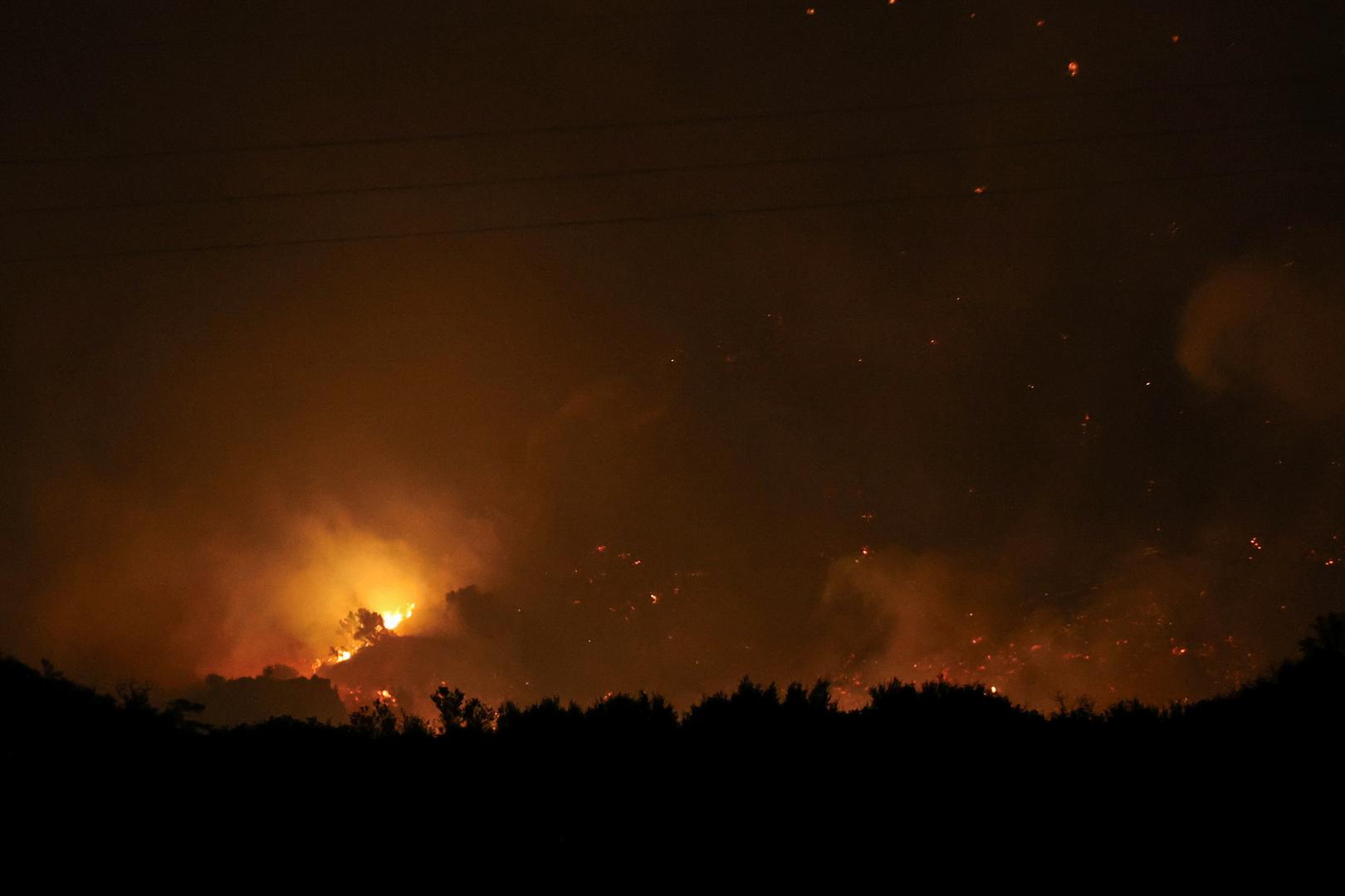 Požar, koji je izbio poslijepodne, potaknuli su olujni vjetrovi koji su otežavali napore gašenja i ponovno raspirivali žarišta. Dodatna pojačanja bila su na putu brodom i zrakoplovom iz Atene, izvijestila je vatrogasna služba."To je vrlo težak požar i još uvijek traje", rekao je anonimni dužnosnik vatrogasne službe za Reuters, pripisujući poteškoće operacije jakim vjetrovima i vrsti terena.