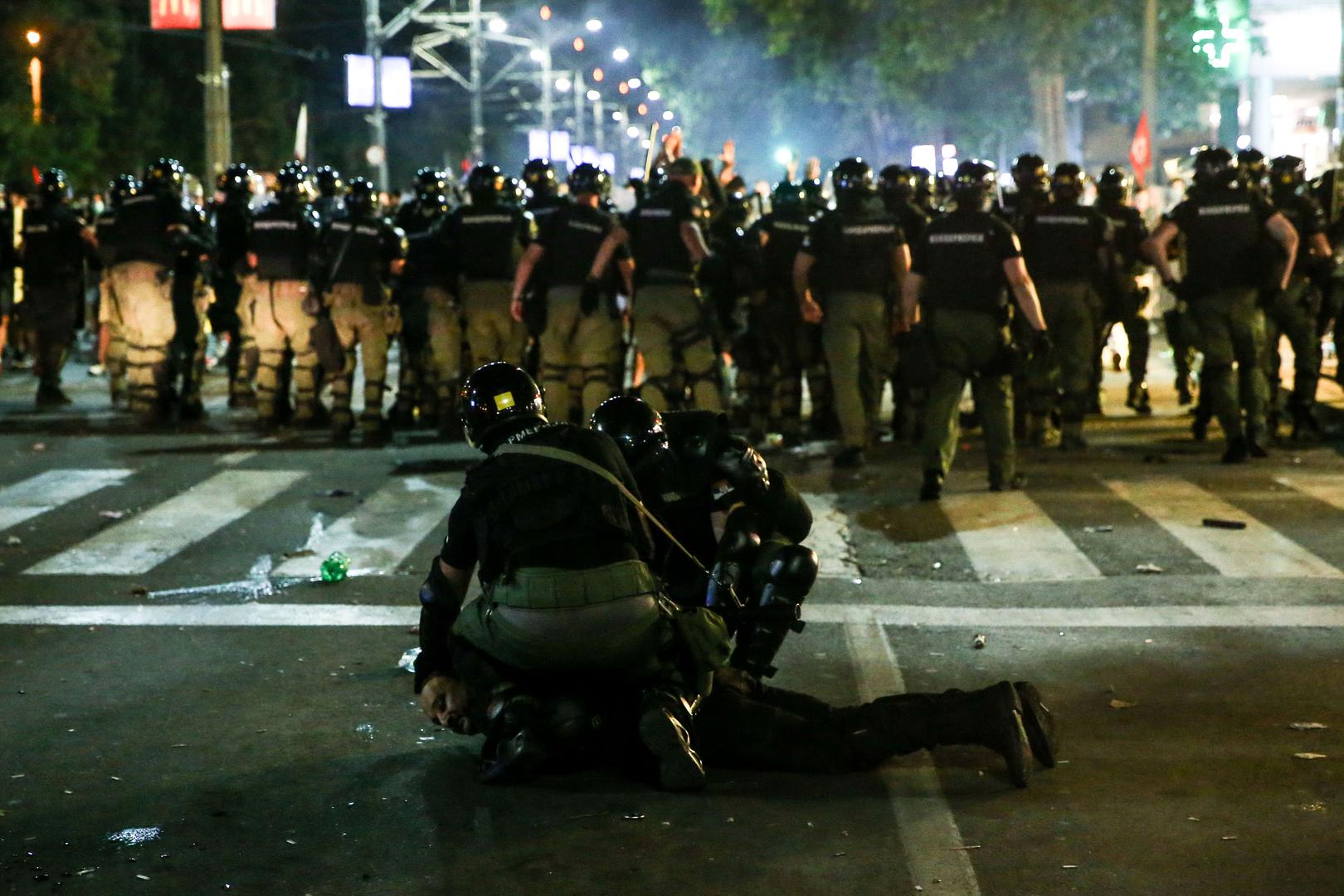 Vasiljević je potvrdio da je privedeno više desetaka osoba koje je nazvao "huliganima", dok su mediji i oporba događaje opisali kao nasilno gušenje građanskog bunta.