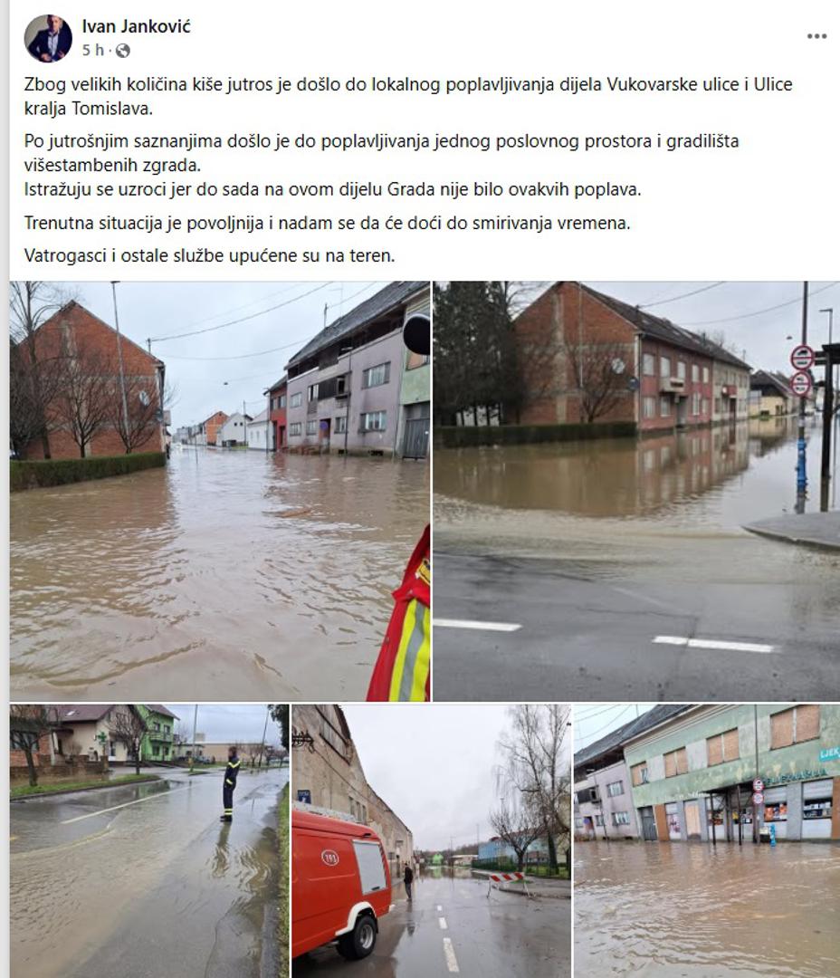 Uslijed obilnih kiša koje su padale u subotu ujutro u Glini su poplavljene Ulica kralja Tomislava i Vukovarska ulica. "Poplavljen je jedan poslovni prostor i gradilište višestambenih zgrada. Istražuju se uzroci jer do sada u ovom dijelu grada nije bilo ovakvih poplava" objavio je na službenom Facebook profilu gradonačelnik Gline Ivan Janković. Trenutačna situacija u Glini je povoljnija, navodi Janković uz nadu da će doći do smirivanja vremena. Vatrogasci i ostale službe su na terenu i drže situaciju pod kontrolom, poručuje gradonačelnik.
