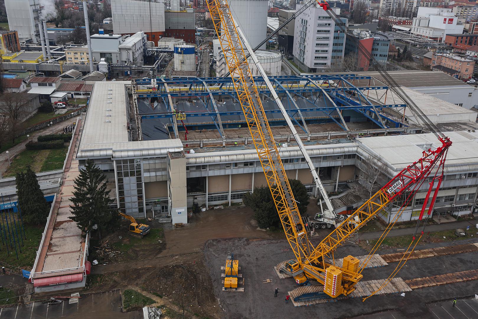 Kod Doma sportova imamo priliku vidjeti najveću dizalicu koja je ikada bila u Zagrebu. Naime, koristi za obnovu krova Doma sportova, pomoću nje postavlja će sei sekundarni krovni nosač, a u utorak je puštena u pogon.