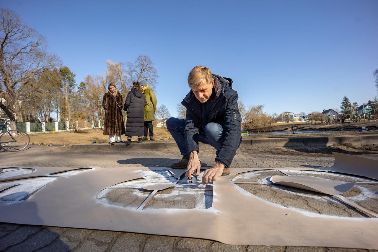 "Naš grad uvijek podržava umjetnost, posebno umjetnost koja šalje poruku mira", rekao je Remigijus Simasius (48) dok je sprejem ispisivao divovska slova 20-metarskog slogana, koristeći dugotrajnu bijelu boju.
