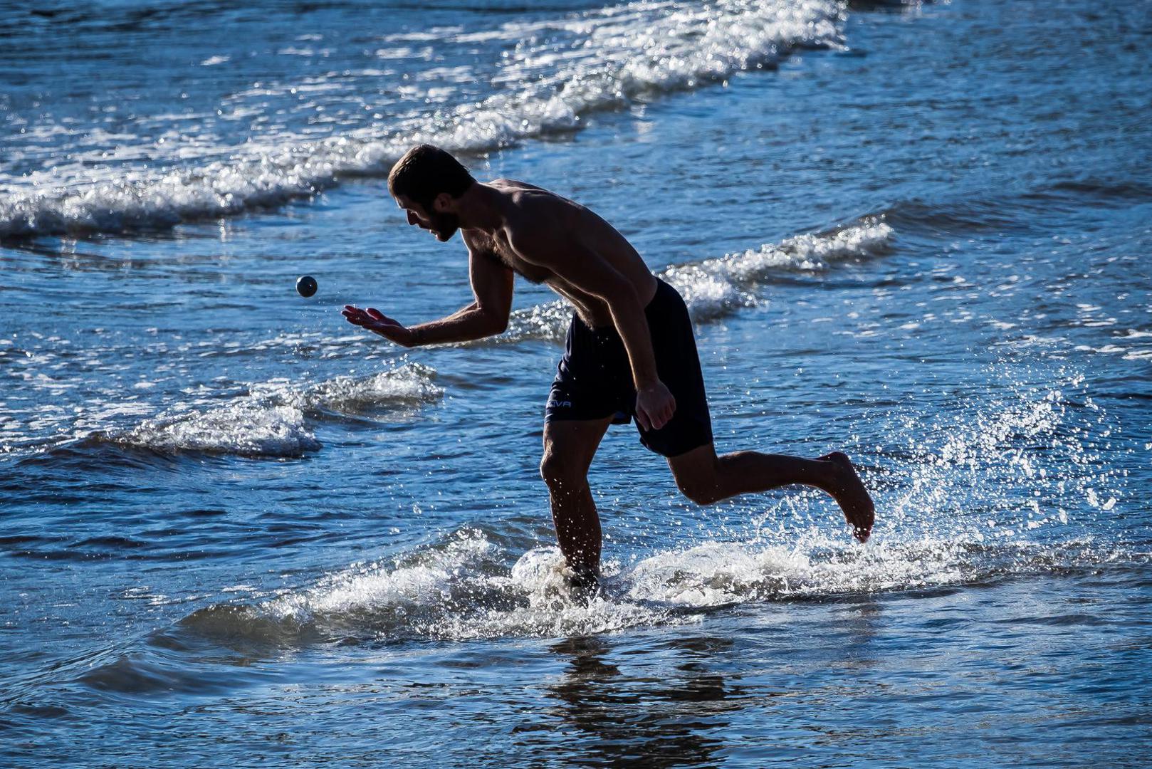 Temperatura mora iznosila je tek 15 stupnjeva, ali to nije spriječilo entuzijaste da zaigraju božićni picigin koji je nekima nezaobilazni dio blagdanske tradicije.