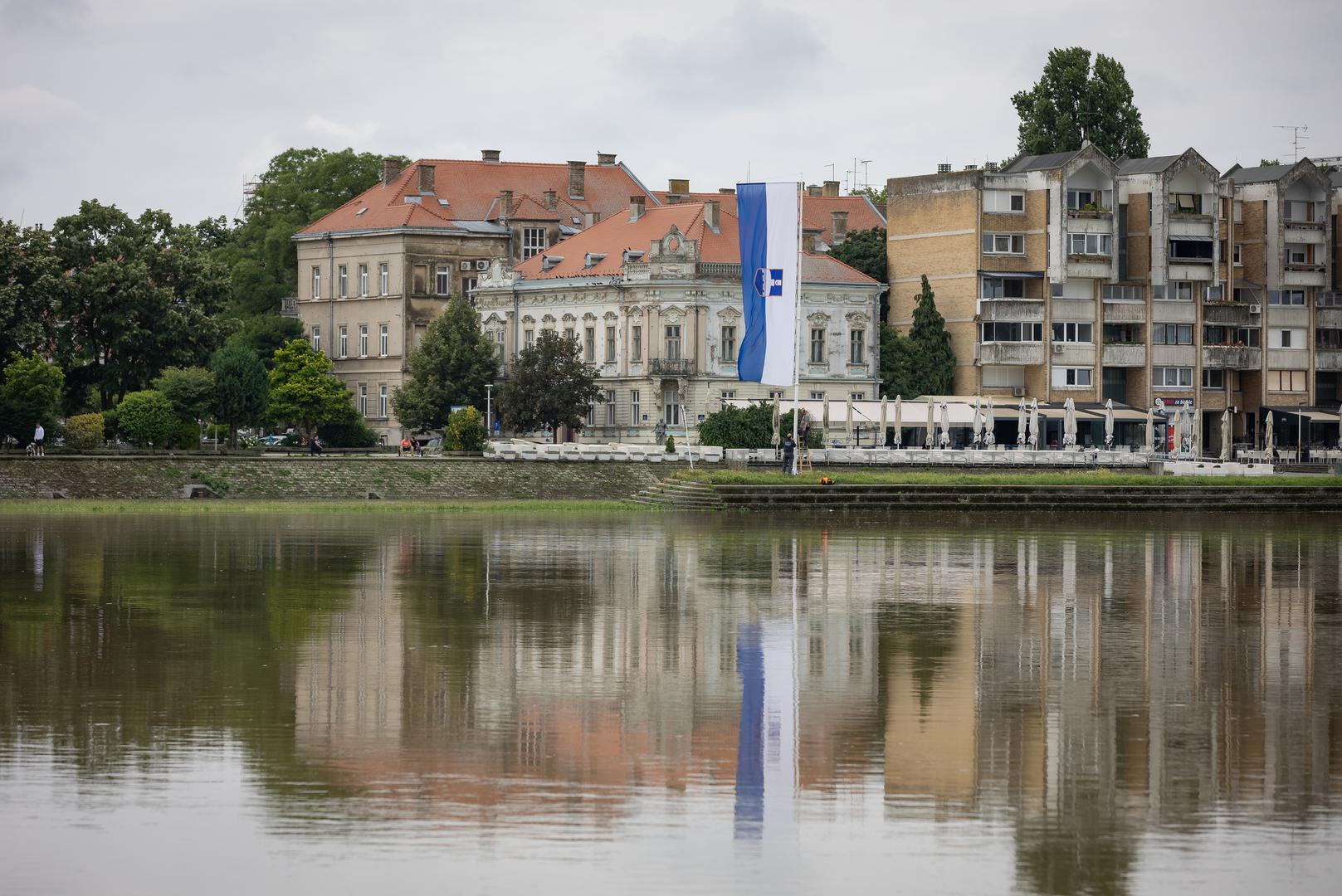 FOTO Izgleda impresivno: Drava je u Osijeku toliko velika da građani bicikliraju po vodi