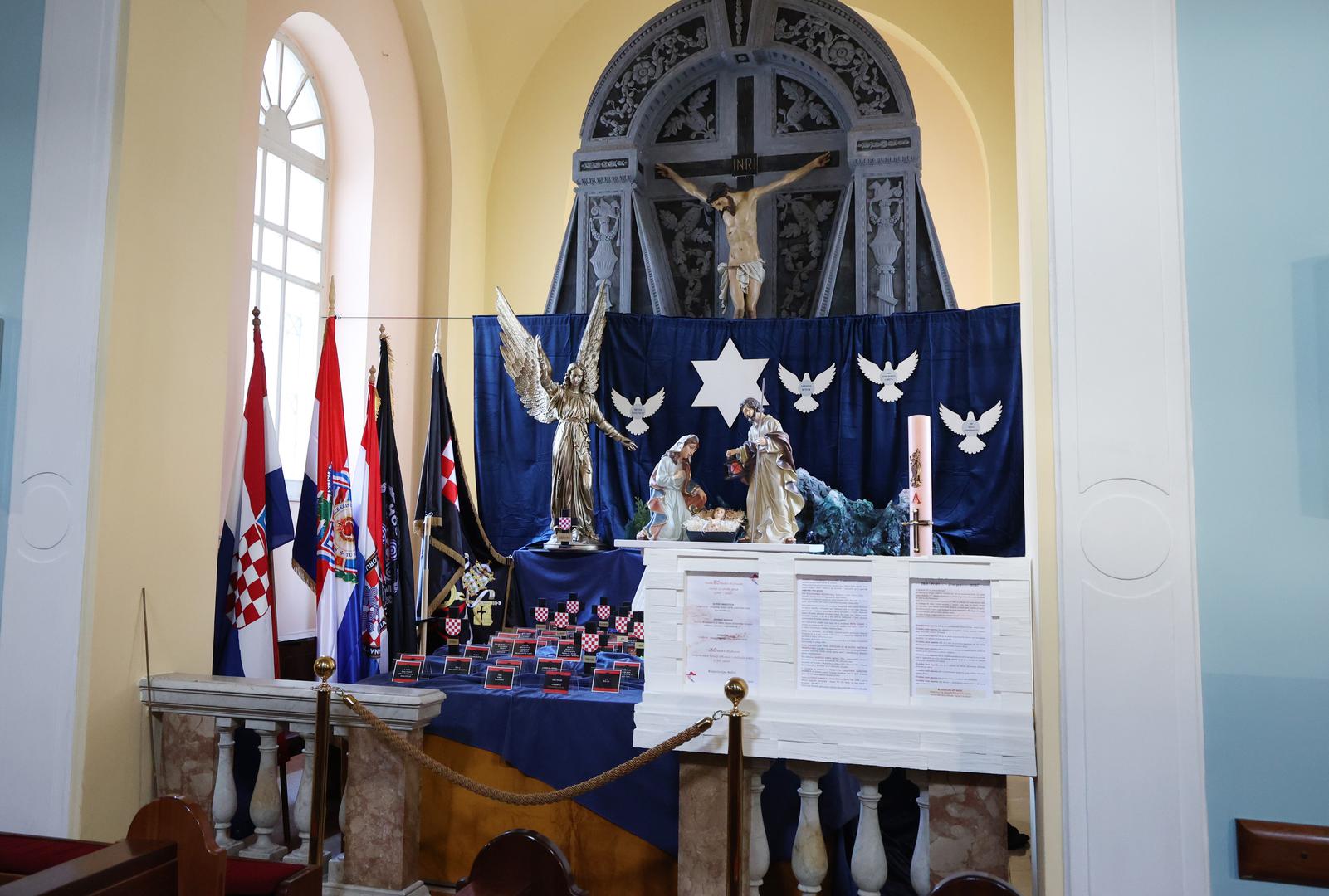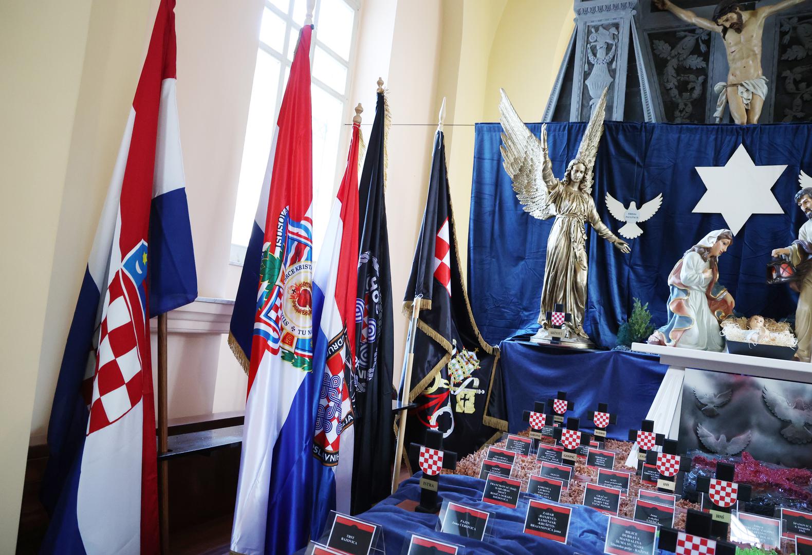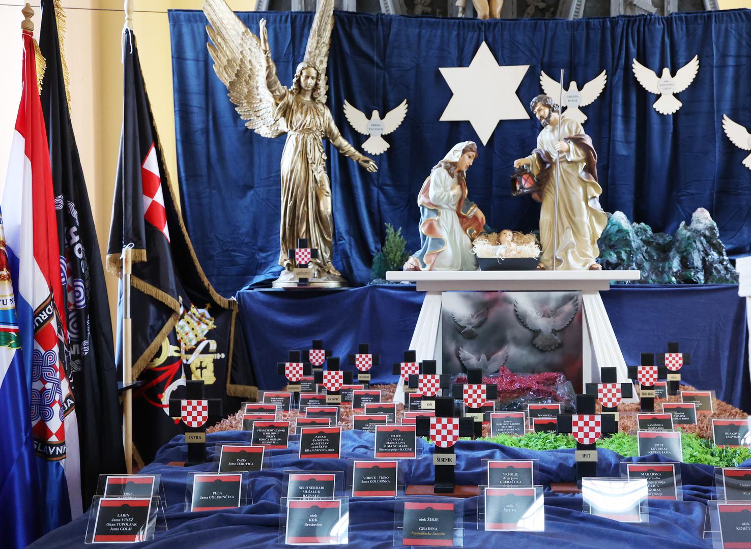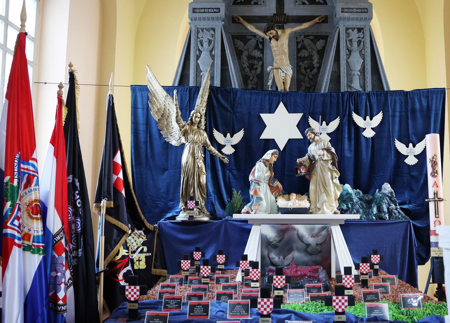 Ove godine, pak, u fokusu je tema koja godinama dijeli hrvatsko društvo, ustaše i partizani. Pokraj jaslica postavljena je, uz službenu hrvatsku zastavu, i zastava HOS-a te još nekoliko drugih.