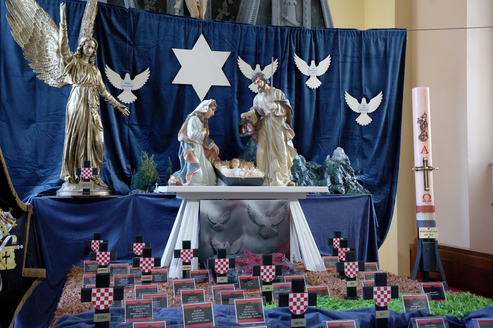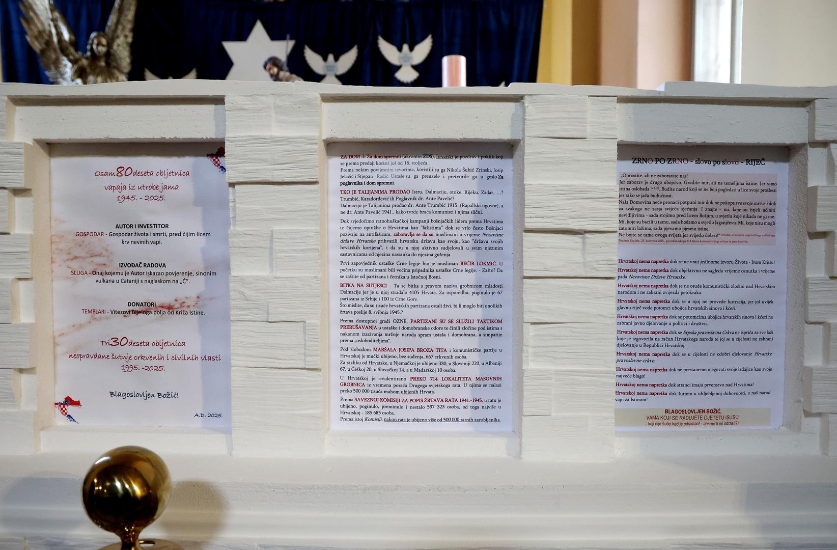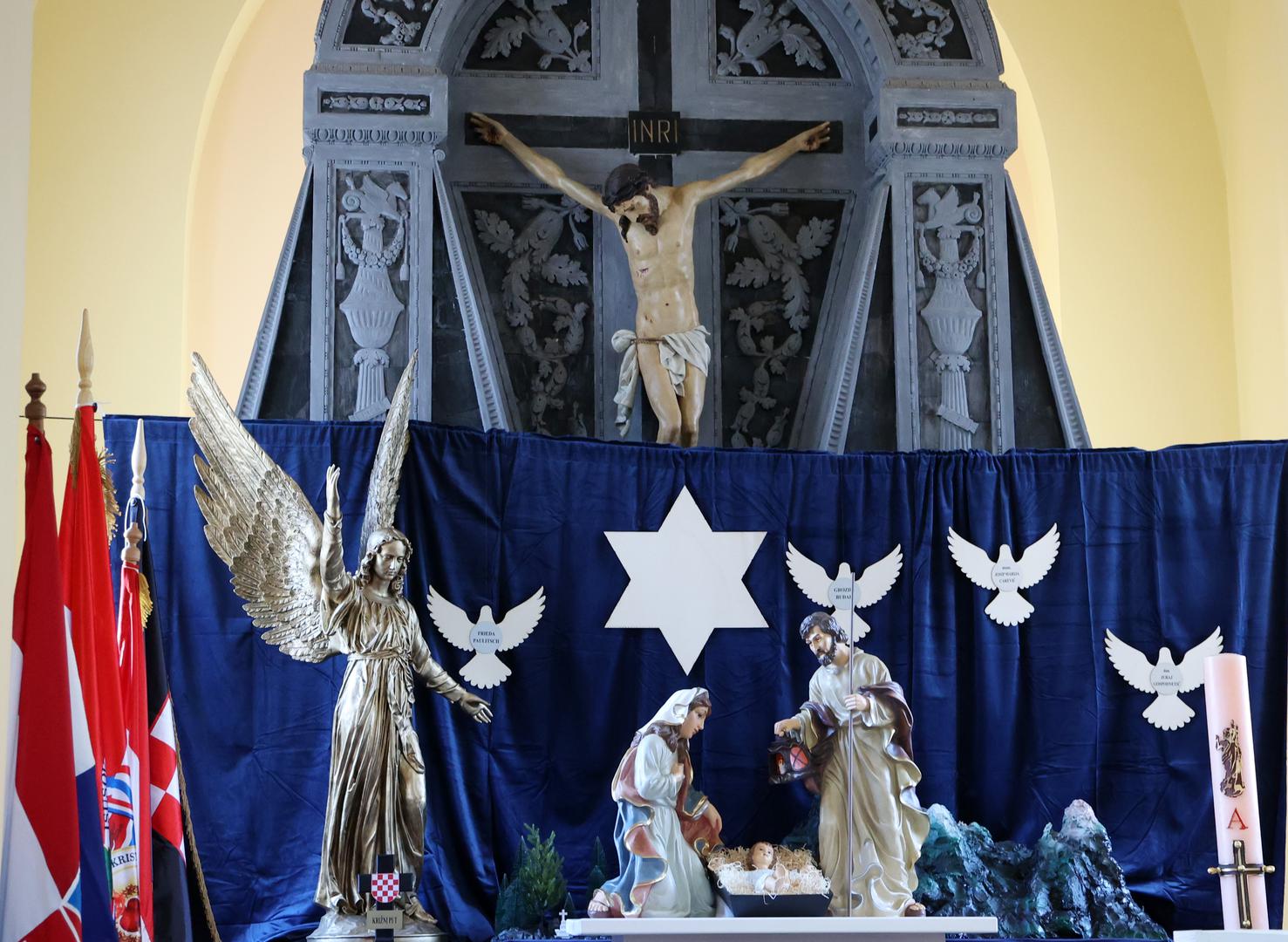 Ove godine, pak, u fokusu je tema koja godinama dijeli hrvatsko društvo, ustaše i partizani. Pokraj jaslica postavljena je, uz službenu hrvatsku zastavu, i zastava HOS-a te još nekoliko drugih.