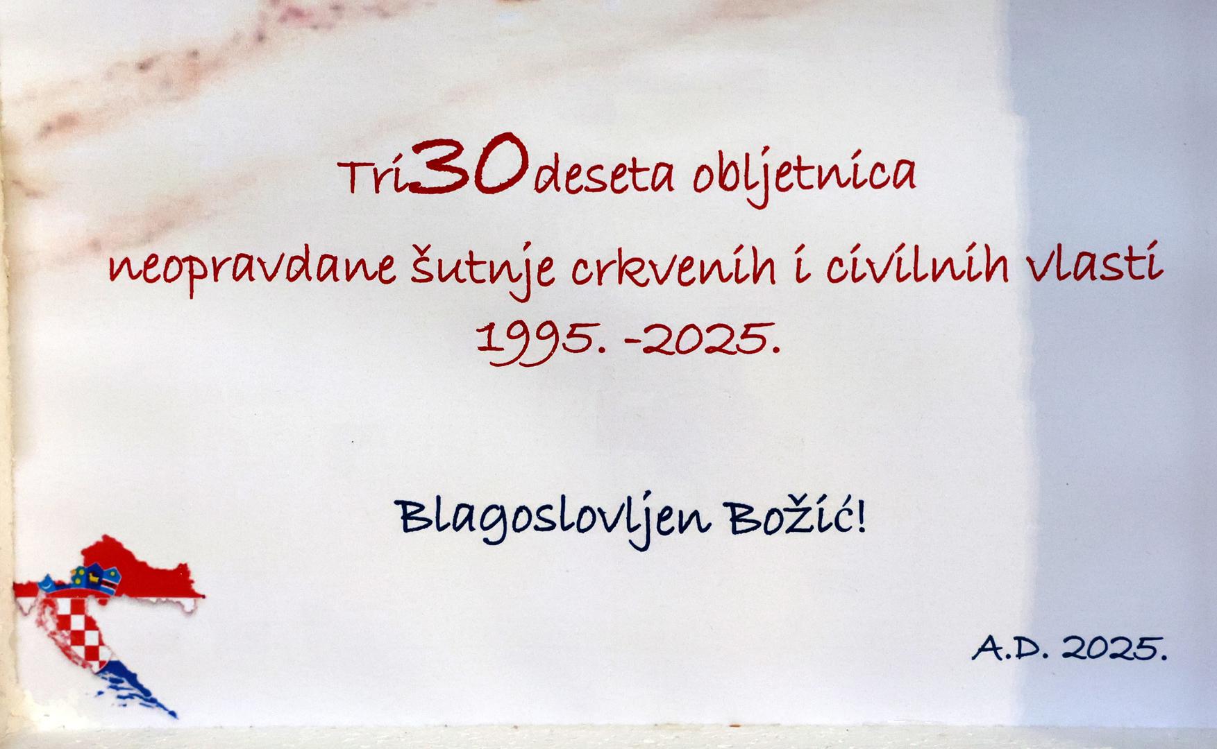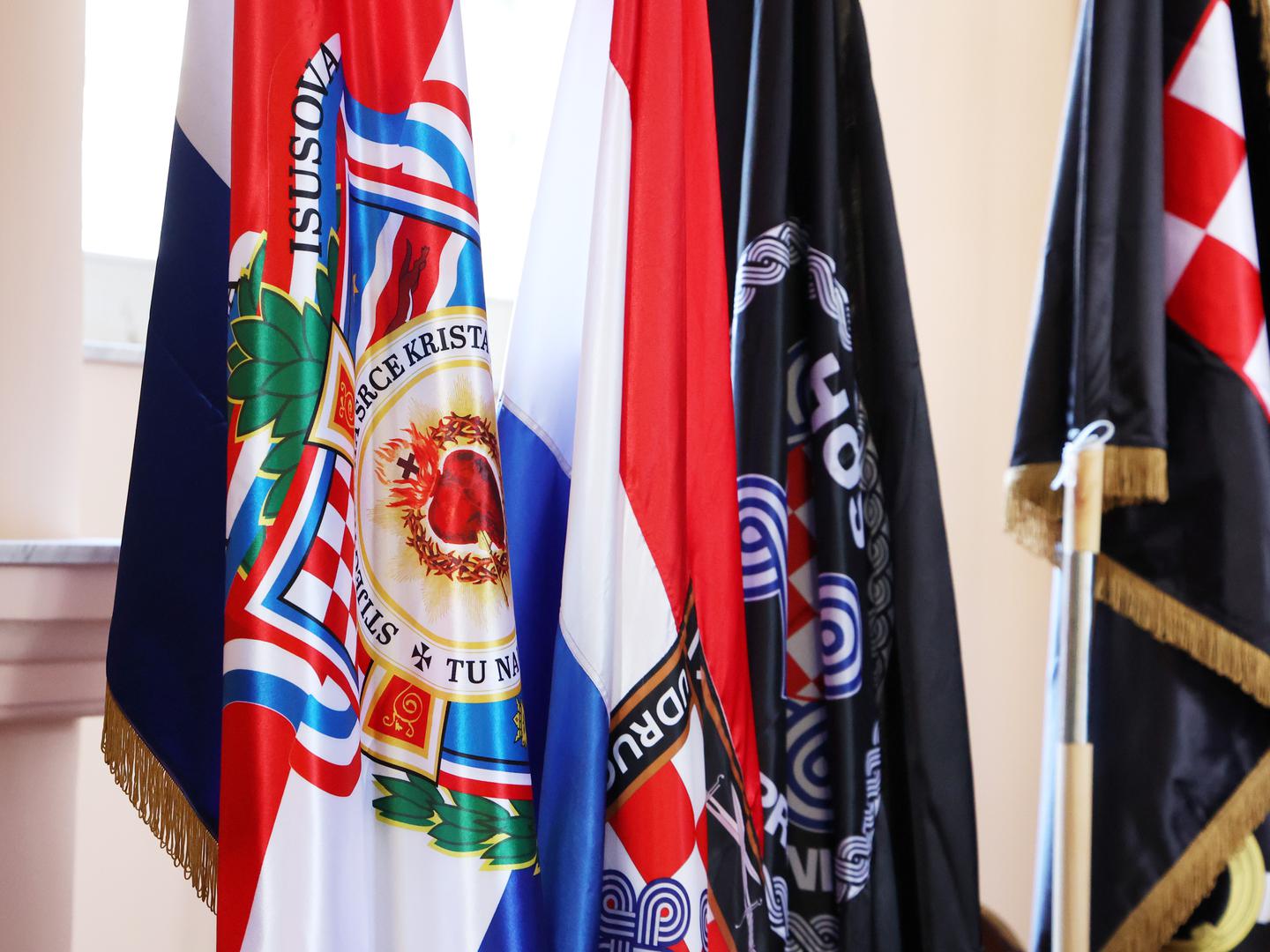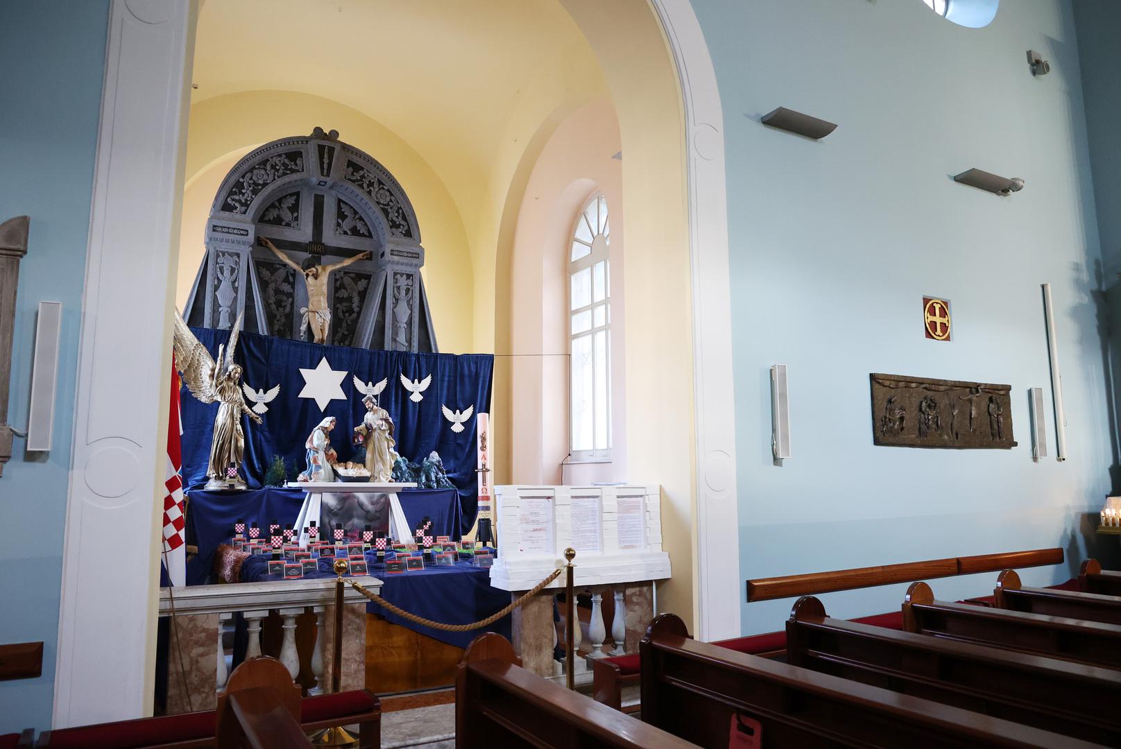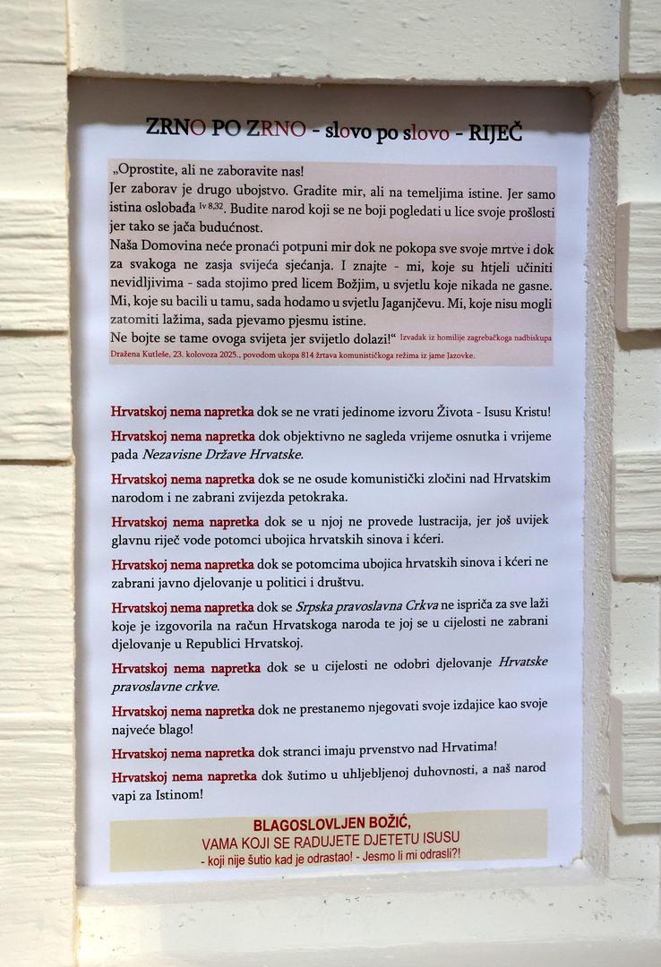 Ove godine, pak, u fokusu je tema koja godinama dijeli hrvatsko društvo, ustaše i partizani. Pokraj jaslica postavljena je, uz službenu hrvatsku zastavu, i zastava HOS-a te još nekoliko drugih.