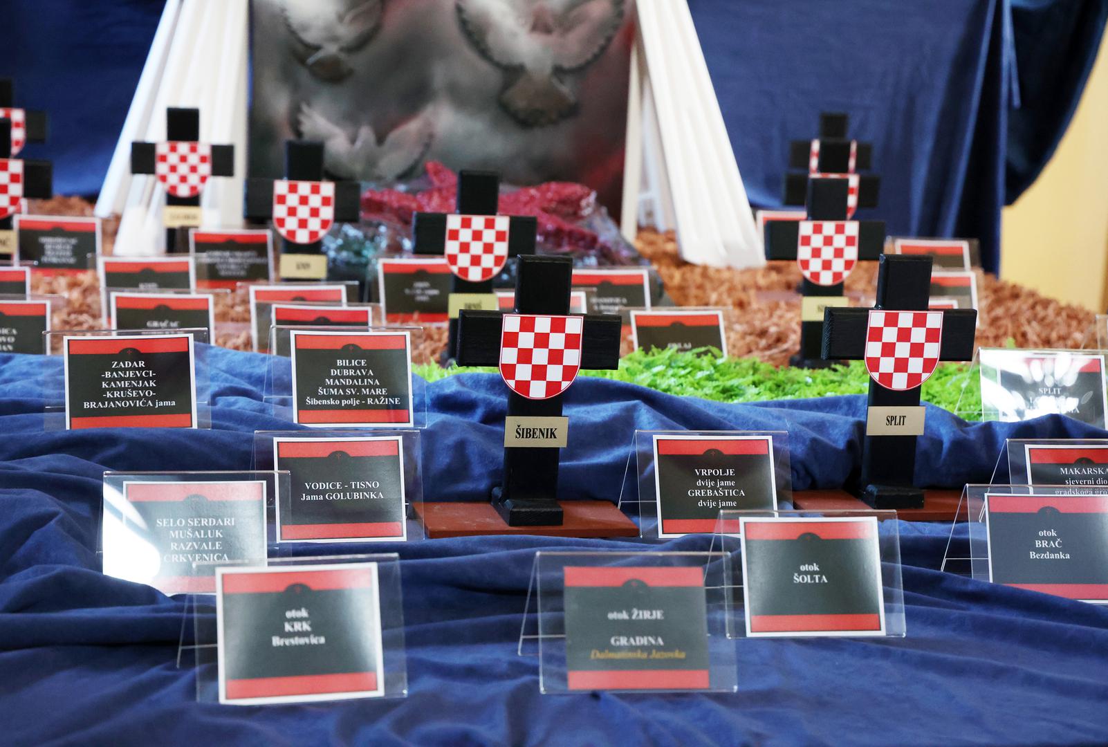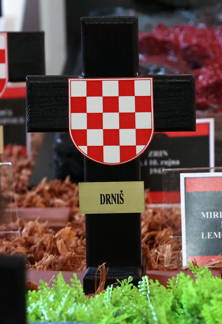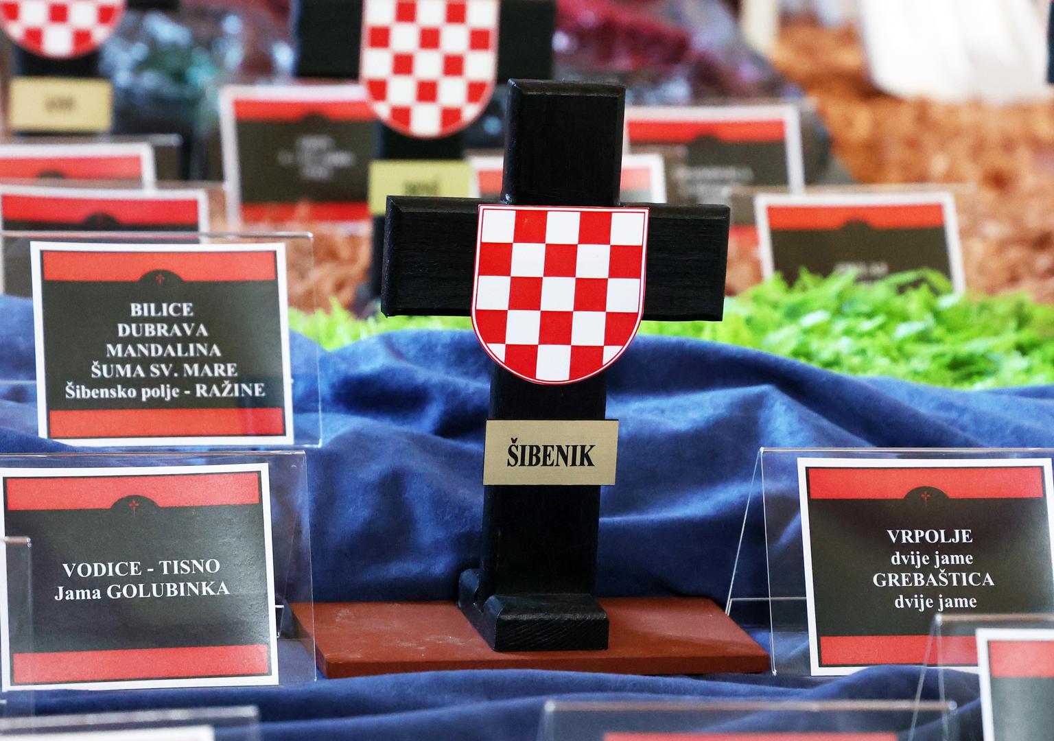Ispred njih nalaze se crni križevi „ukrašeni“ hrvatskim grbovima s početnim bijelim poljem, kao i ploče s popisom jama i stratišta Hrvata u Drugom svjetskom ratu.