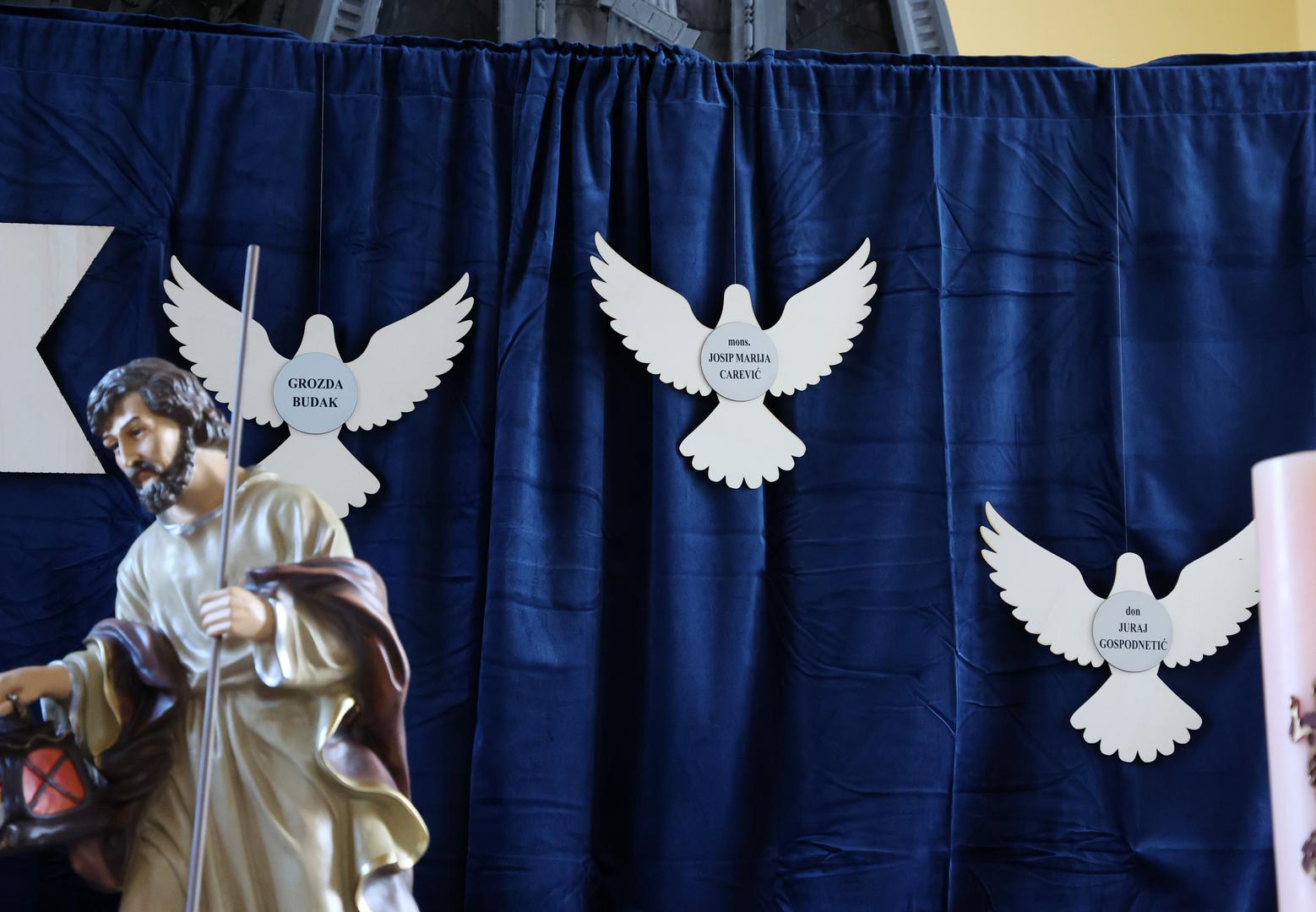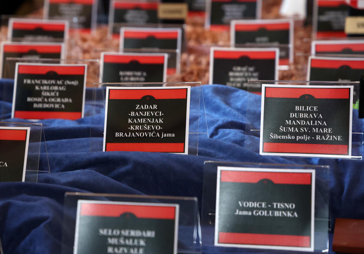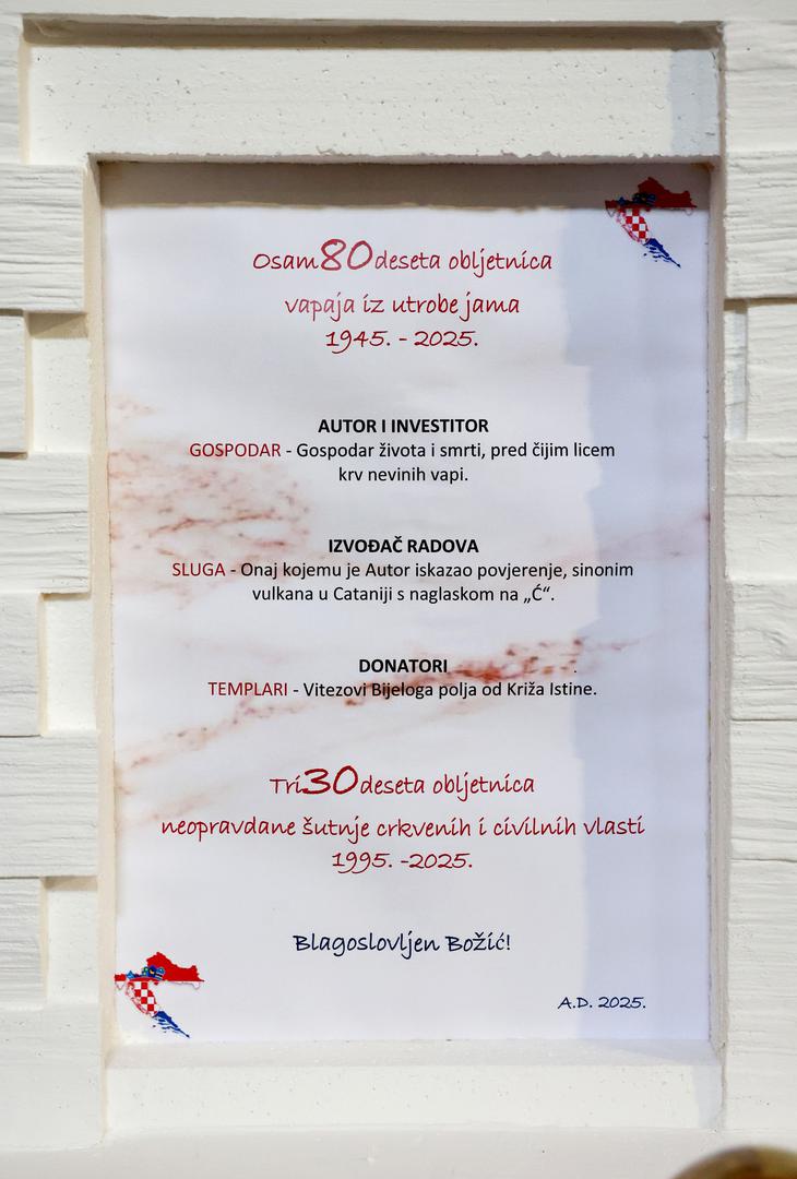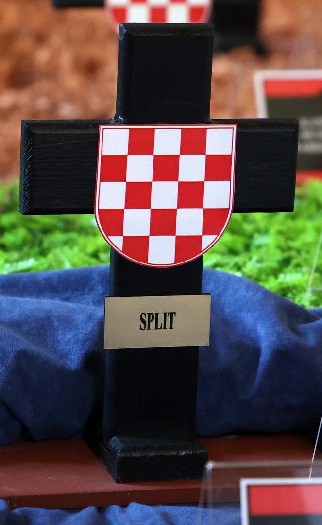 Ispred njih nalaze se crni križevi „ukrašeni“ hrvatskim grbovima s početnim bijelim poljem, kao i ploče s popisom jama i stratišta Hrvata u Drugom svjetskom ratu.