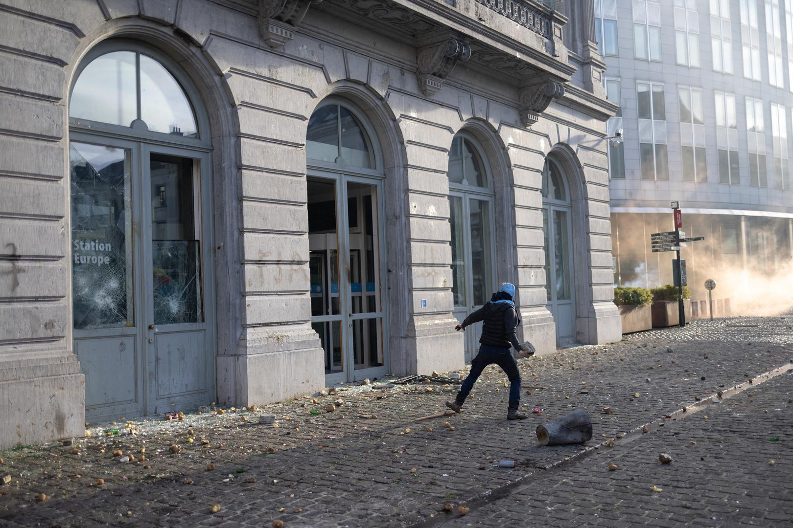 FOTO Potpuni kaos u Bruxellesu: Nasilje eskaliralo, lete suzavci i vodeni topovi, prosvjednik se traktorom zabio u policiju