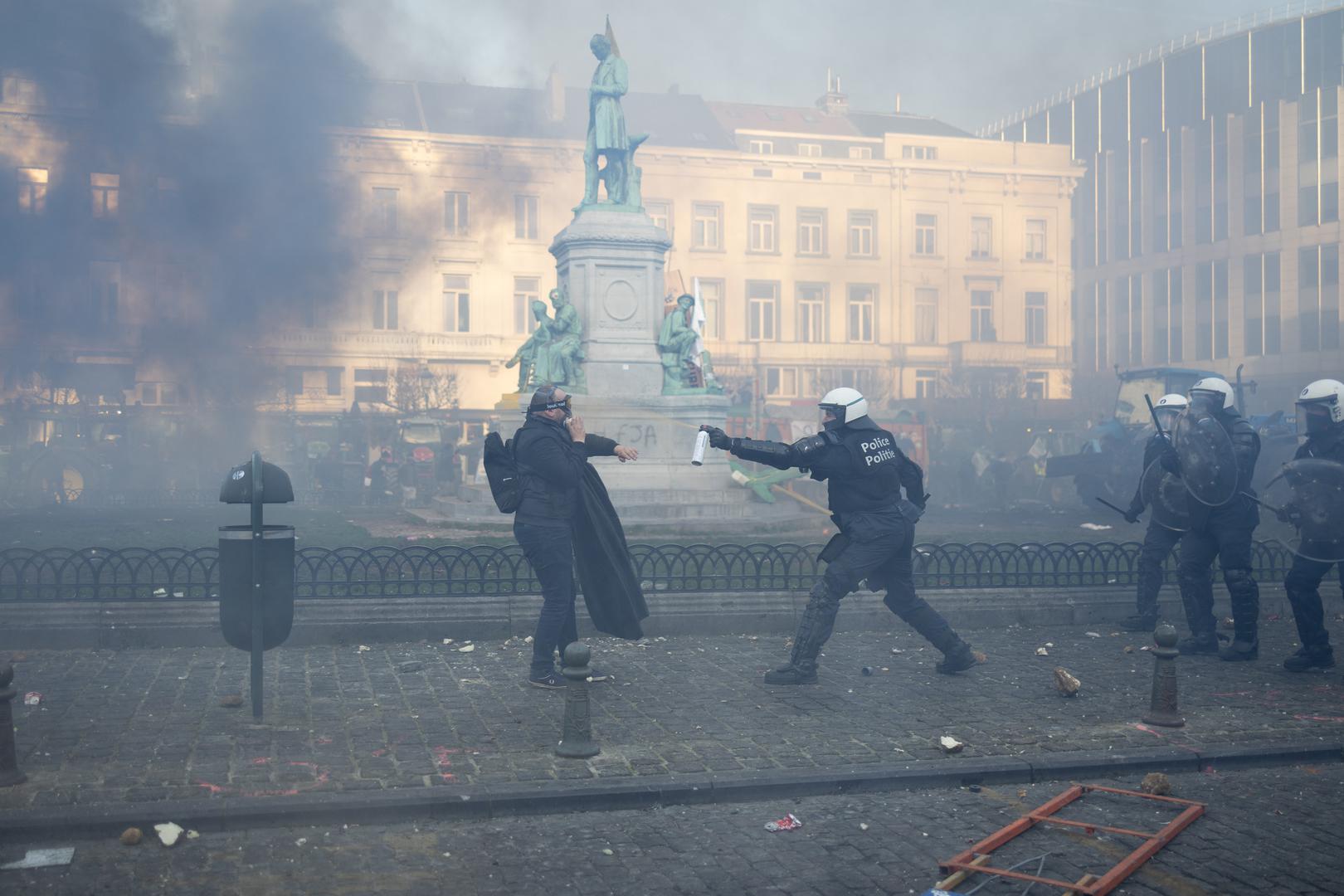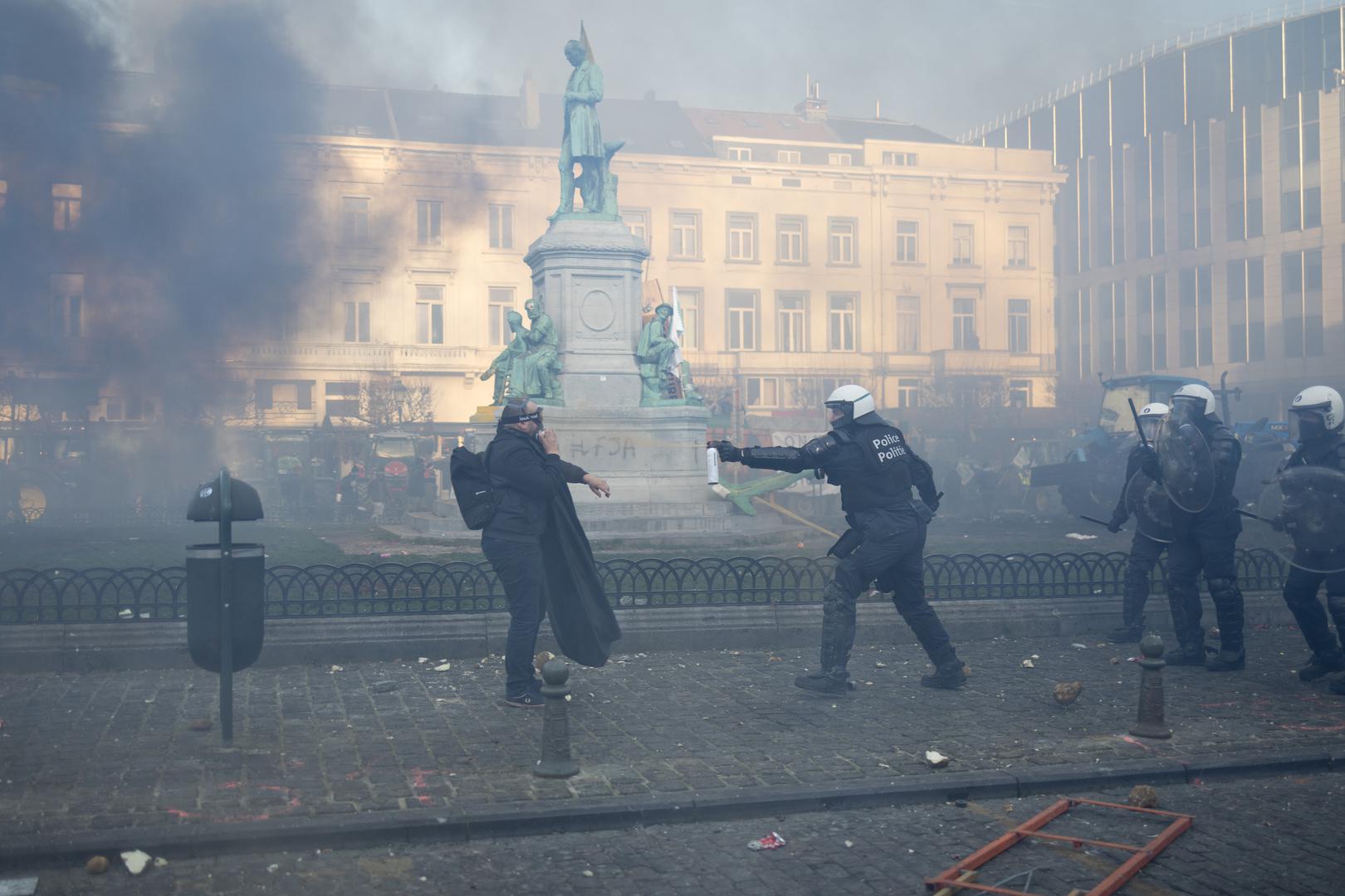 Belgijska policija suzavcem i vodenim topovima obrušila se na prosvjed poljoprivrednika protiv sporazuma o slobodnoj trgovini između Europske unije i Mercosura postali nasilni, a neki su prosvjednici bacali kamenje i krumpir na policiju te razbijali prozore.