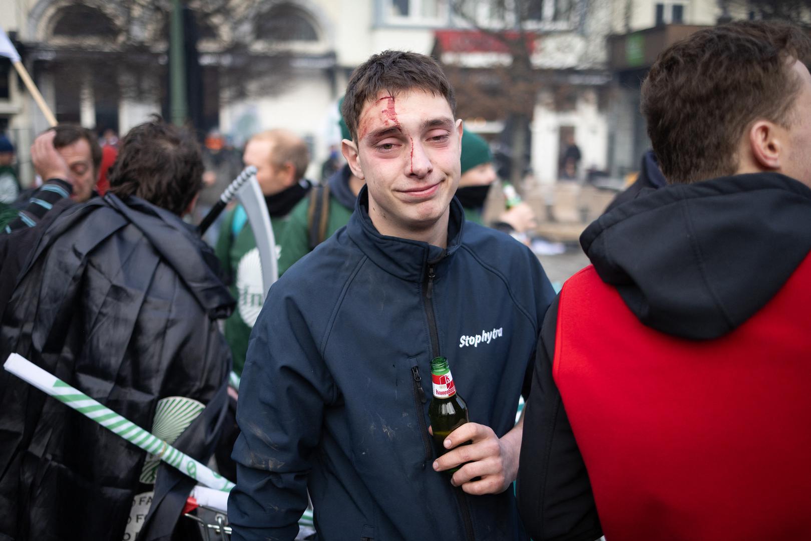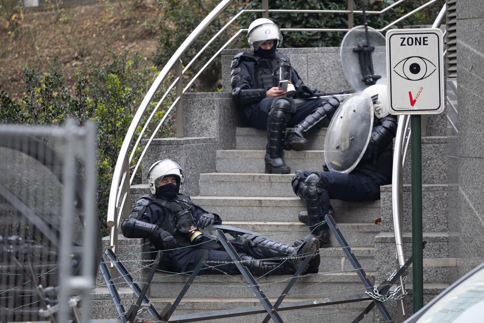 Policija je intervenirala kada je nasilje eskaliralo i pokušala uhititi neke od prosvjednika. U jednom trenutku, traktor se zabio u red interventne policije, iako se činilo da nikoga nije udario. Neki su također ciljali novinare.