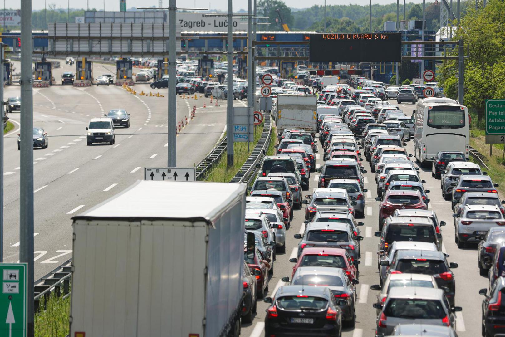 Pred naplatnom postajom Lučko kolona iz smjera čvora Jakuševec (A3) je oko 10 kilometara, a zastoji su i iz smjera Jadranske avenije.
