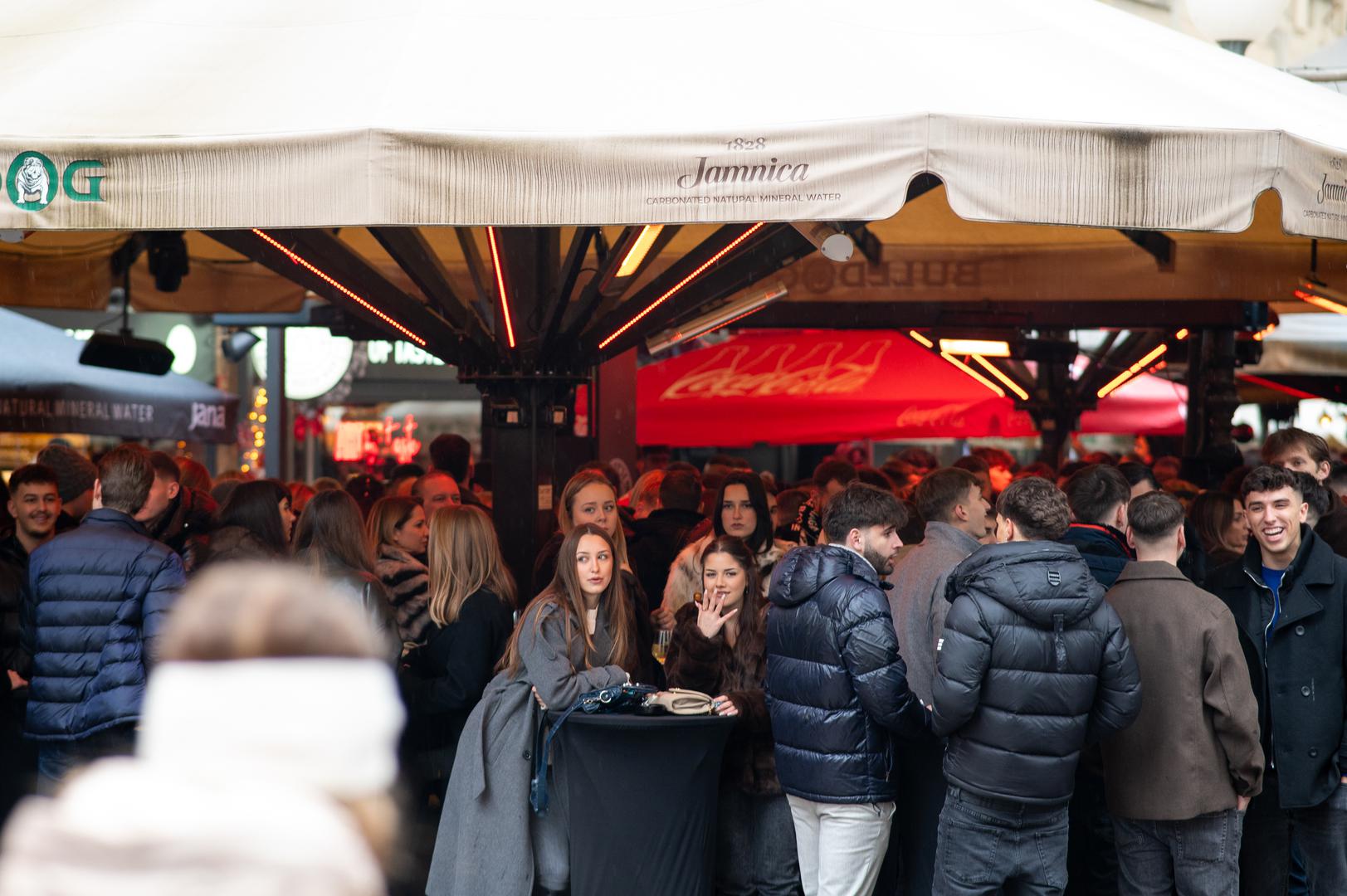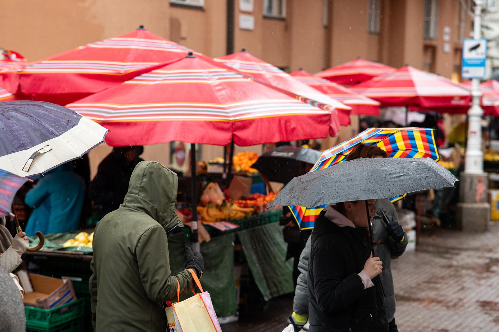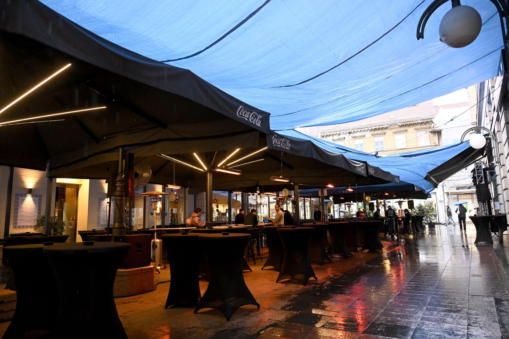 Na Cvjetnom trgu situacija je i jutros slična. Nervozni konobari i organizatori trčali su u svim smjerovima kako bi pripremili prostor za party. Kiša pljušti, vjetar puše, a ulice su gotovo prazne. Unatoč svemu, dio građana odlučio je Badnjak provesti na ulici pod suncobranima i ceradom.