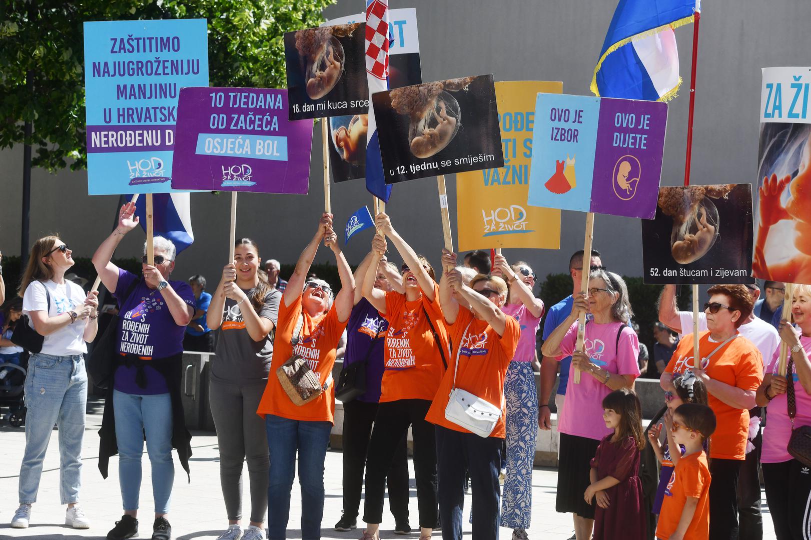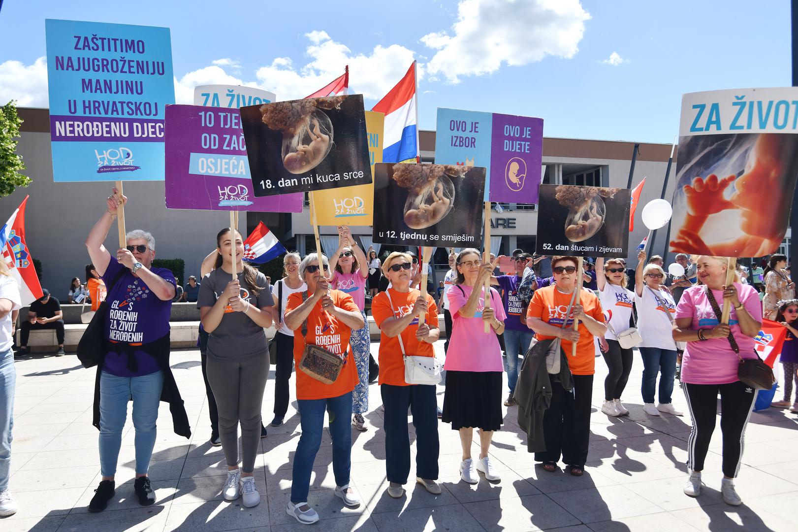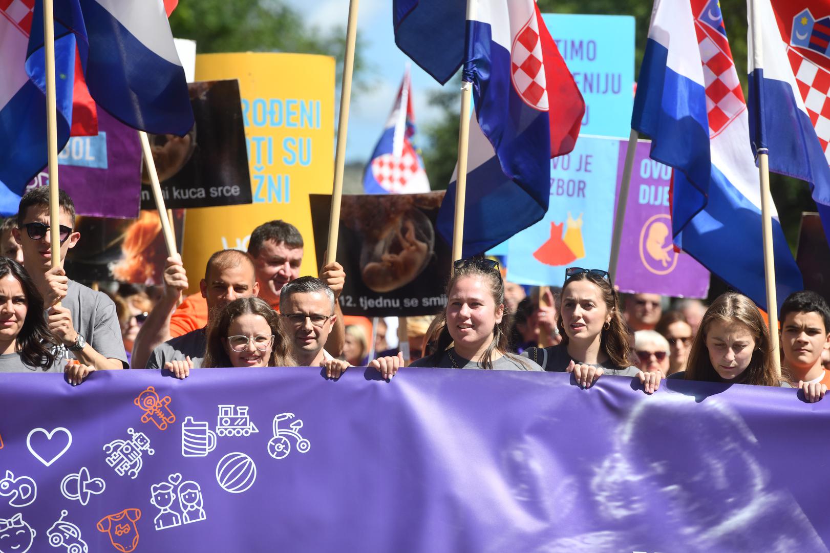 "Glas rođenih za život nerođenih", piše na najvećem transparentu, dok se na manjima moglo pročitati: "U 12. tjednu se smiješim", "Zaštitimo najugroženiju manjinu u Hrvatskoj - nerođenu djecu", "I nerođeni životi su važni" i drugi.
