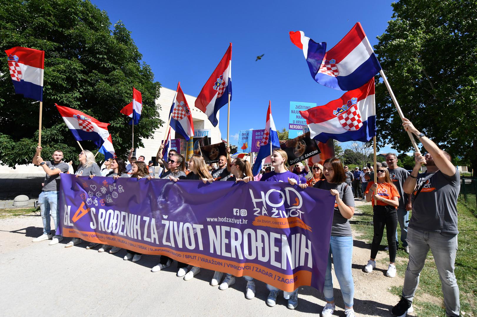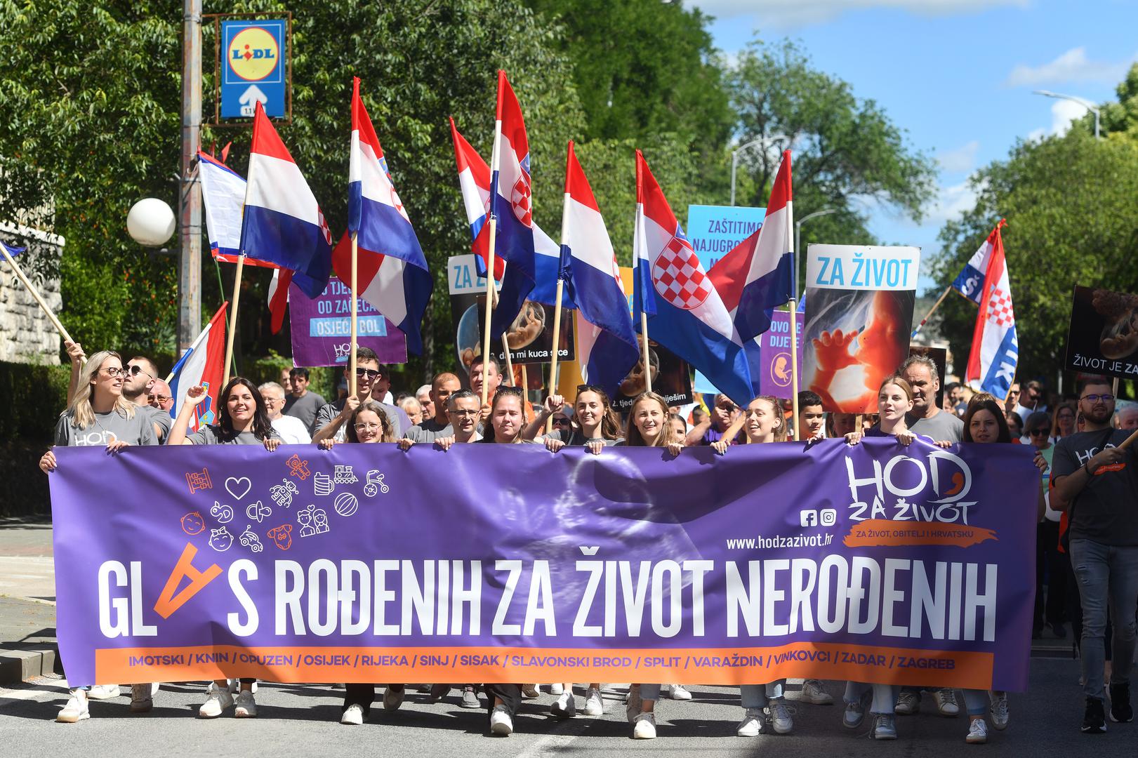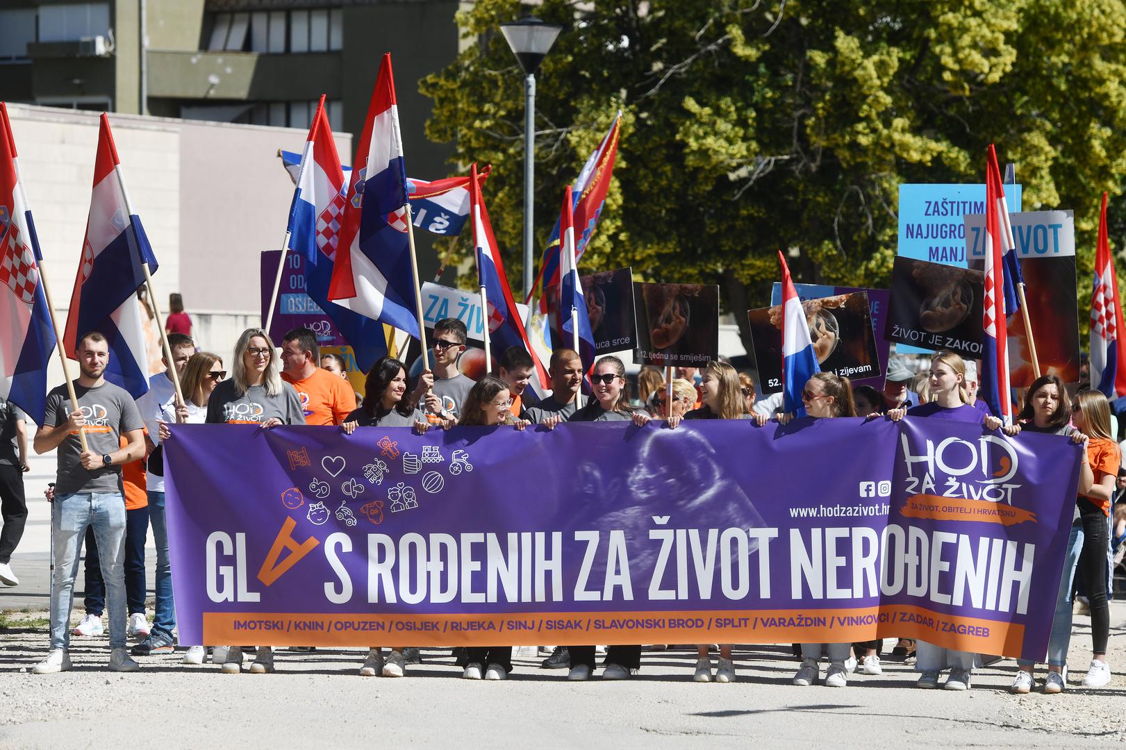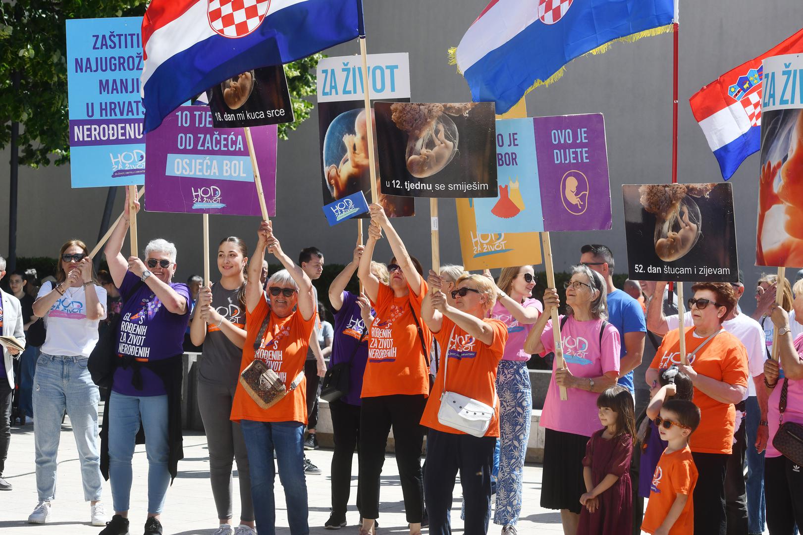 "Glas rođenih za život nerođenih", piše na najvećem transparentu, dok se na manjima moglo pročitati: "U 12. tjednu se smiješim", "Zaštitimo najugroženiju manjinu u Hrvatskoj - nerođenu djecu", "I nerođeni životi su važni" i drugi.
