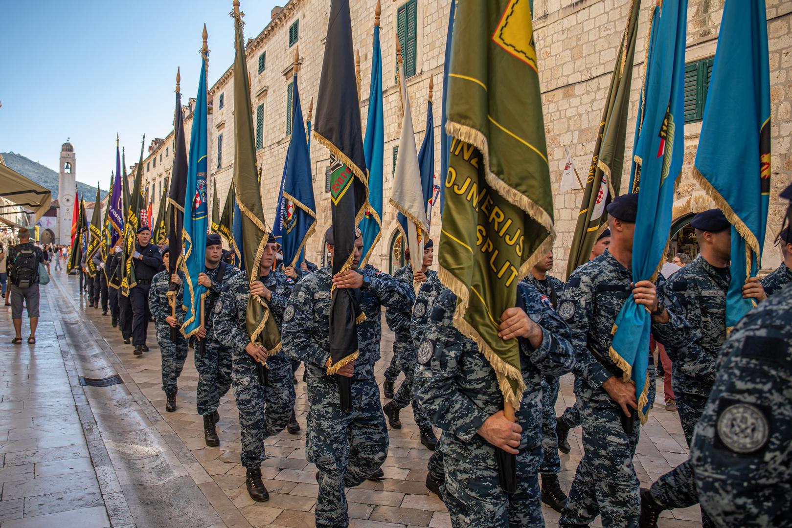 Nakon odavanja počasti poginulima u Domovinskom ratu, na Stradunu je uslijedio mimohod ratnih zastava i postrojba koje su obranile i oslobodile jug Hrvatske, uz predstavljanje Počasno-zaštitne bojne.