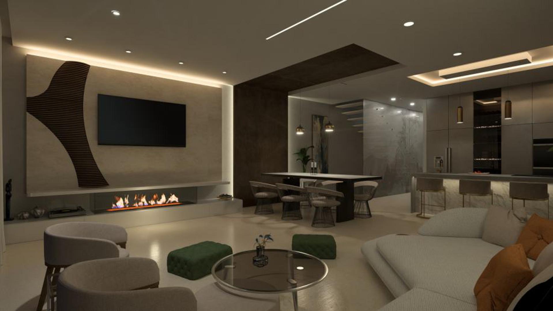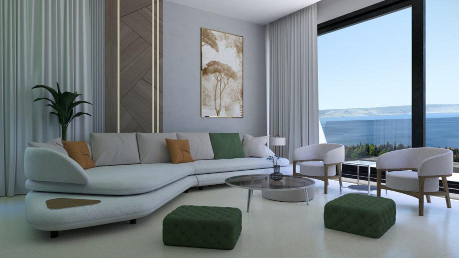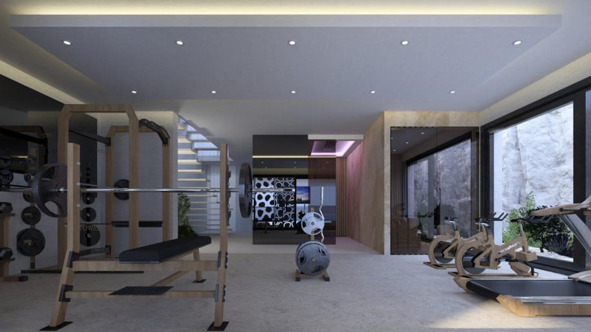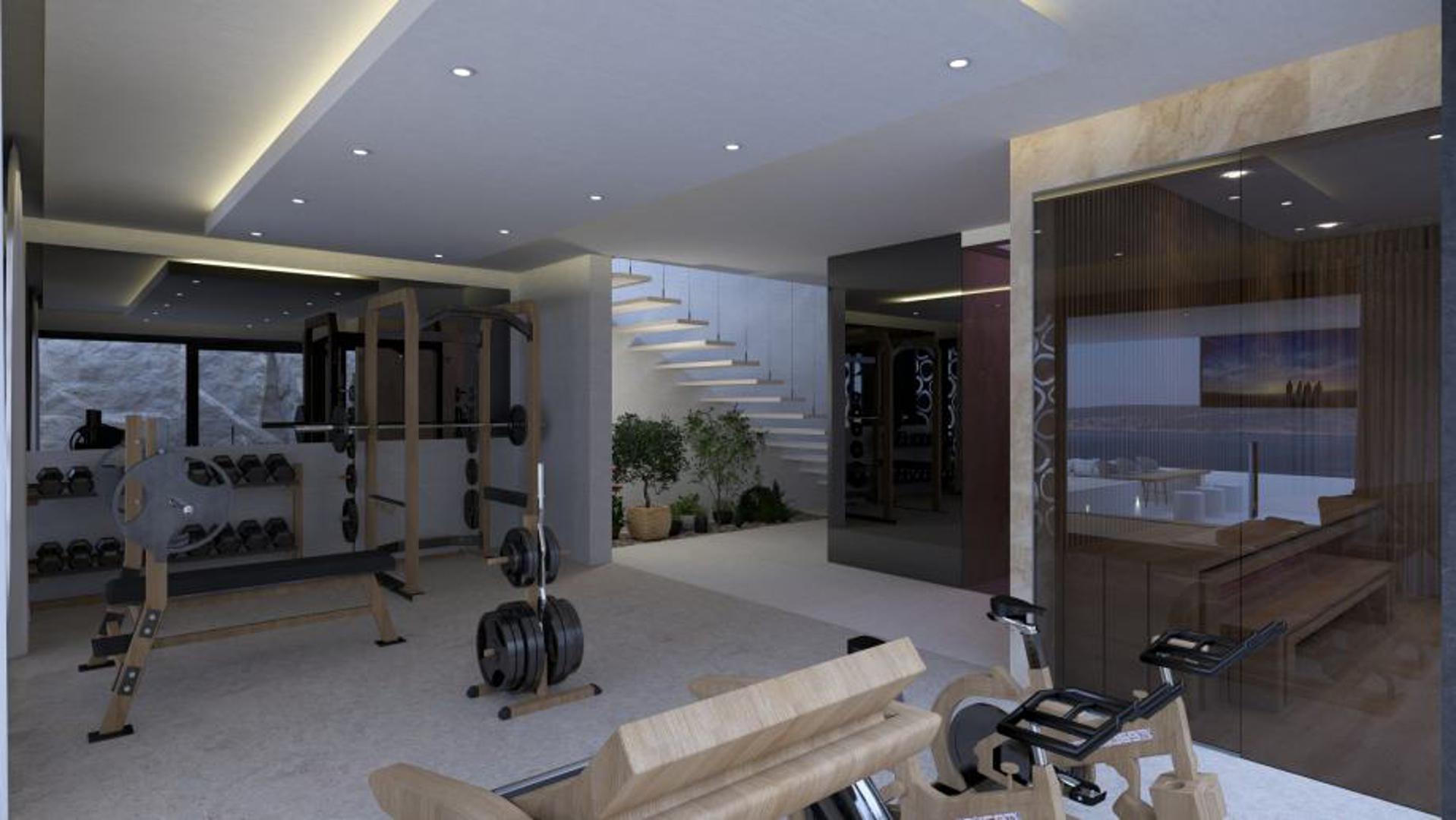 U podrumu su wellness i fitness prostor, tehnički sadržaji i dodatni dnevni prostor. Terasa je opremljena infinity bazenom, hidromasažnim bazenom, prostorom za roštilj i kamin.