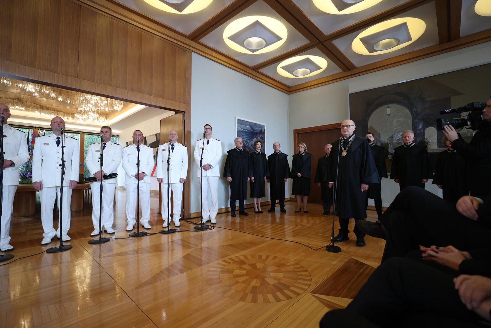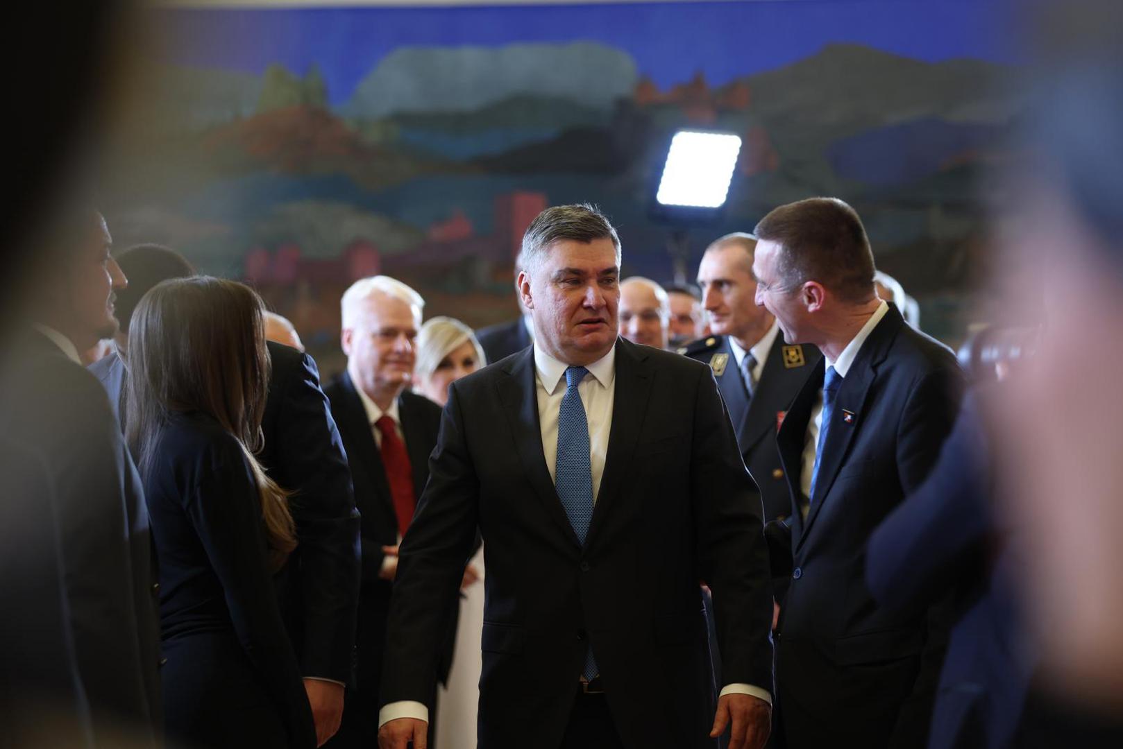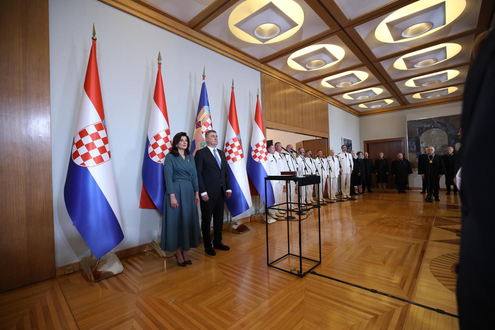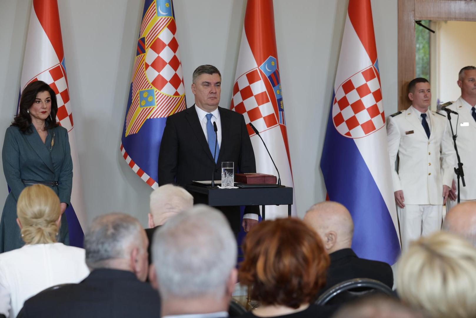 - Prisežem svojom čašću da ću dužnost predsjednika Republike Hrvatske obavljati savjesno i odgovorno, na dobrobit hrvatskog naroda i svih hrvatskih državljana. Kao hrvatski državni poglavar, držat ću se Ustava i zakona, brinuti se za poštovanje ustavnopravnog poretka Republike Hrvatske, bdjeti nad urednim i pravednim djelovanjem svih tijela državne vlasti, čuvati nezavisnost, opstojnost i jedinstvenost Republike Hrvatske. Tako mi Bog pomogao, prisegnuo je Milanović na svečanosti u predsjedničkom Uredu na Pantovčaku.