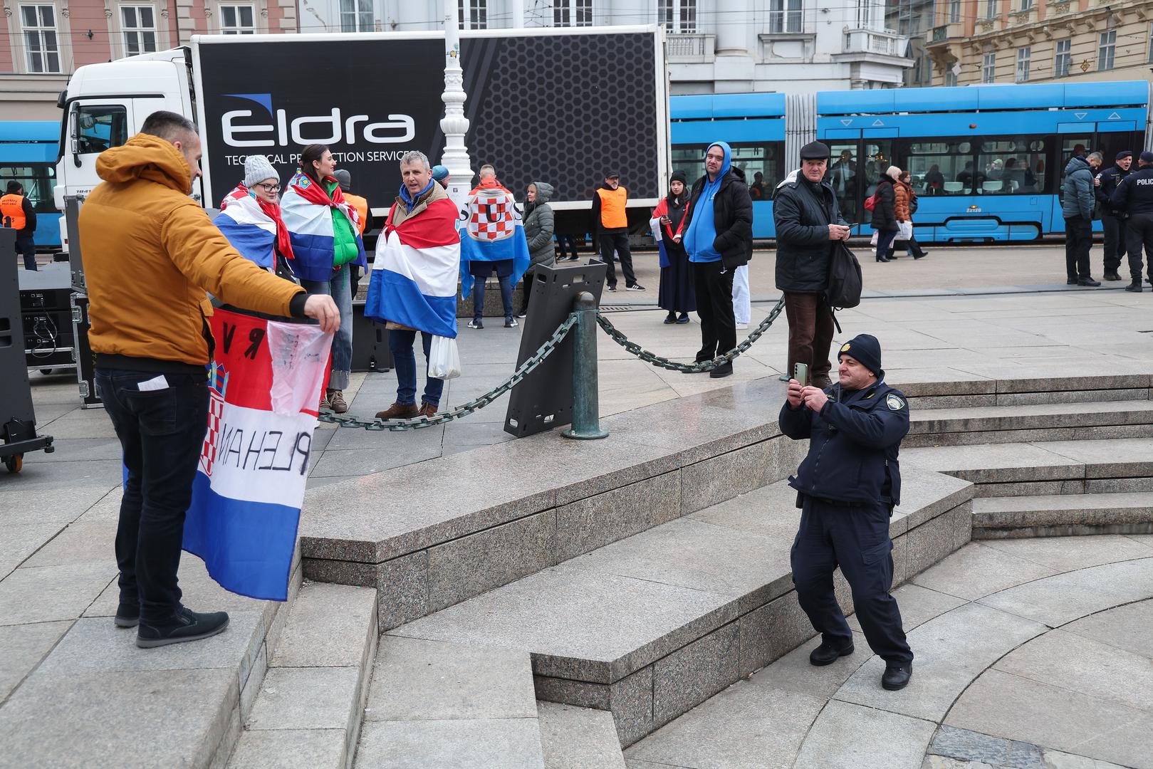 15:03 - Prvi navijači počeli su se okupljati na Trgu bana Josipa Jelačića na kojem se nalazi i veliki broj policajaca
