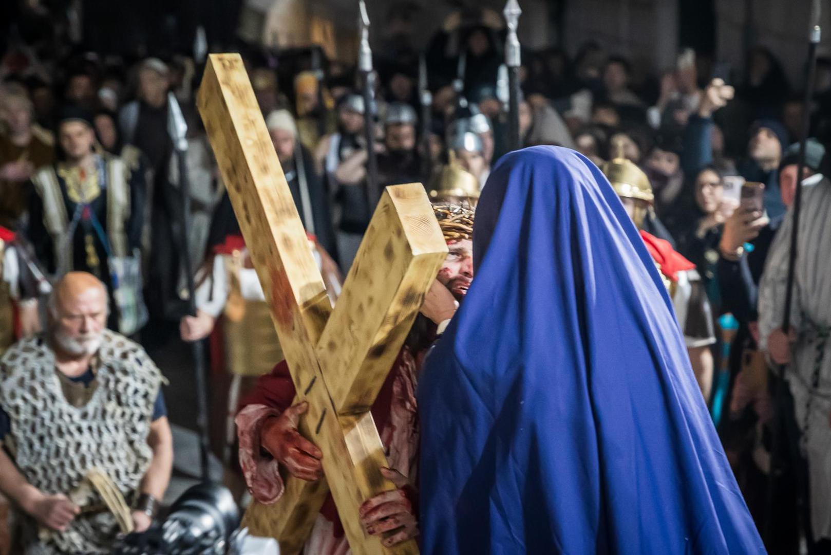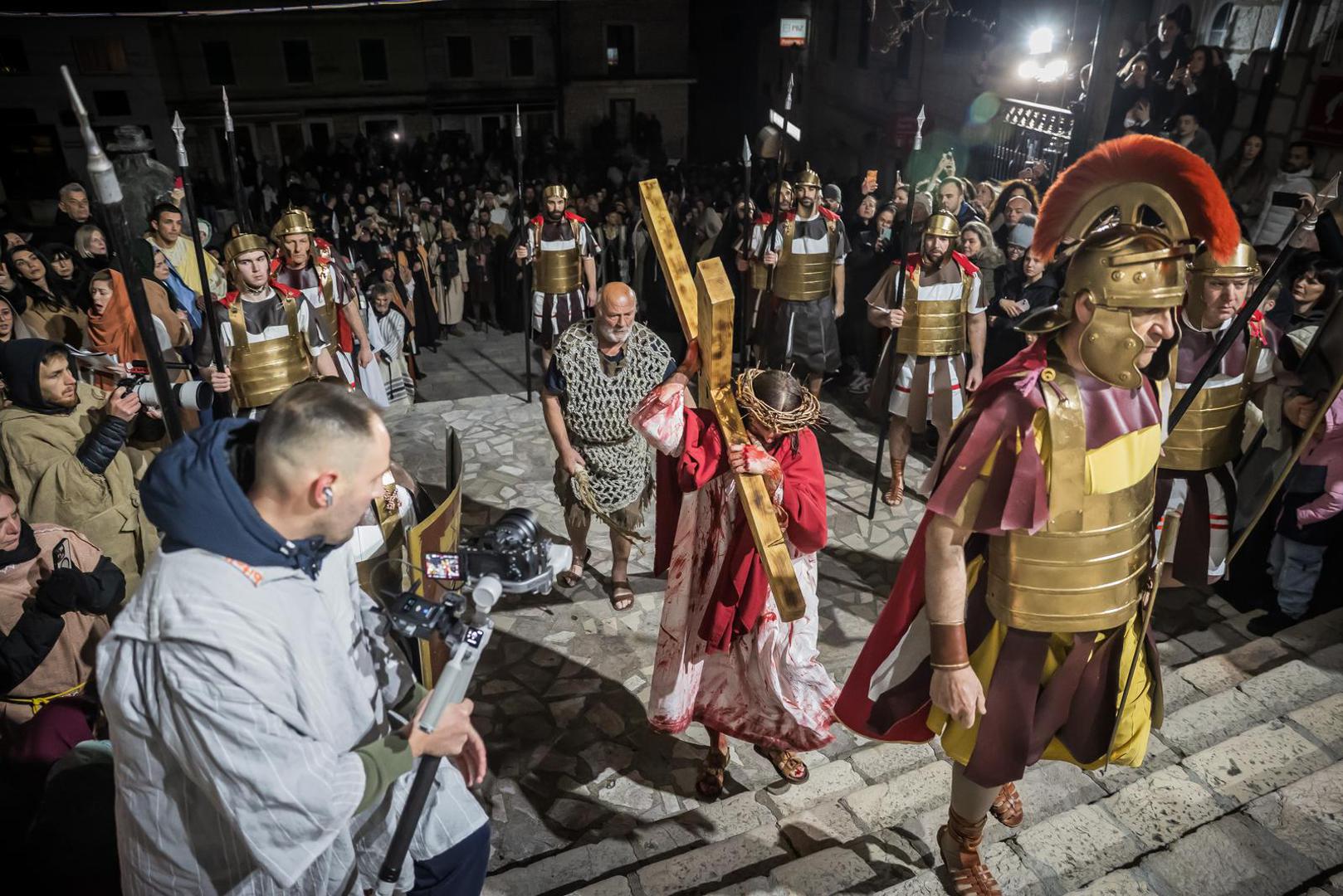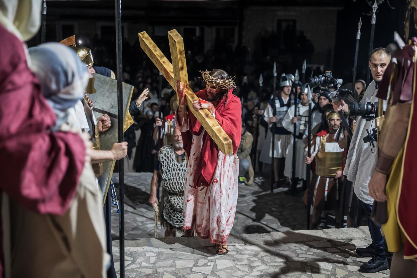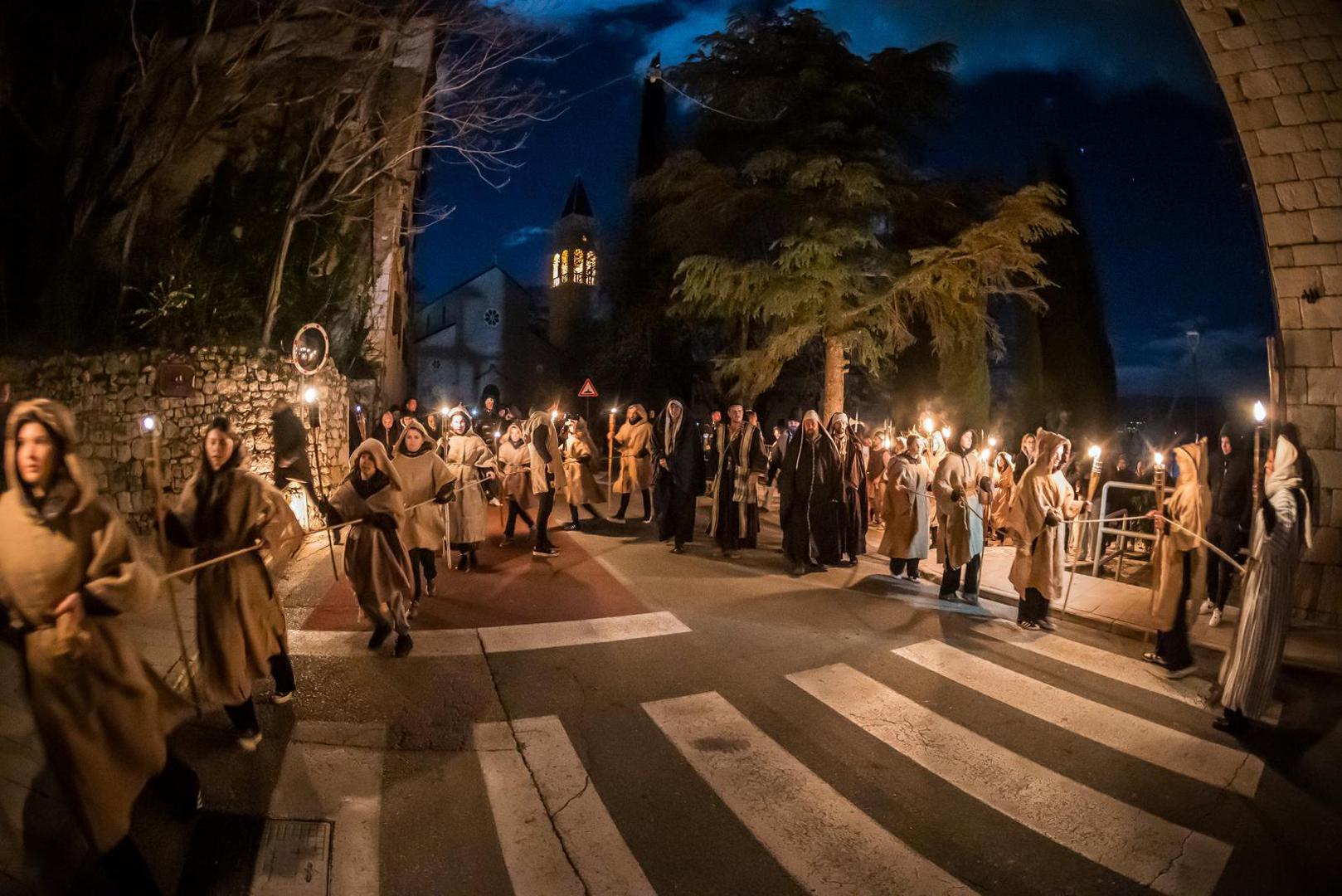Scenski prikaz koji su i ove godine organizirali imotski franjevci na čelu s gvardijanom fra Zoranom Kutlešom započeo je u večernjim satima molitvom Anđeo Gospodnji i obraćanjem fra Zorana vjernicima, piše IKA.