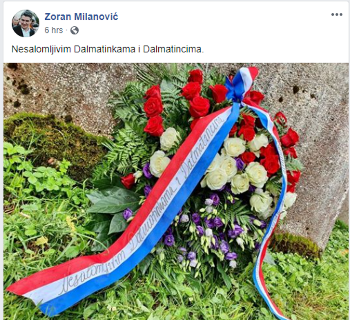 Na položenom vijencu što se vidi i na fotografiji koju je objavio predsjednik Zoran Milanović na svom facebook profilu vidi se i posebna poruka „Nesalomljivim Dalmatinkama i Dalmatincima“, a kojom je predsjednik odao počast palim borcima Druge dalmatinske brigade koji su tamo izgubili svoje živote u borbi protiv nacista.