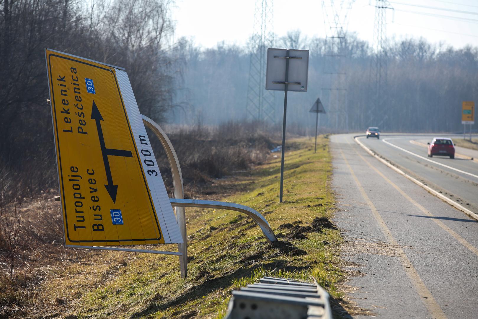 FOTO Oštećen više od pola godine nakon nevremena: Prometni znak kod Buševca još je savijen