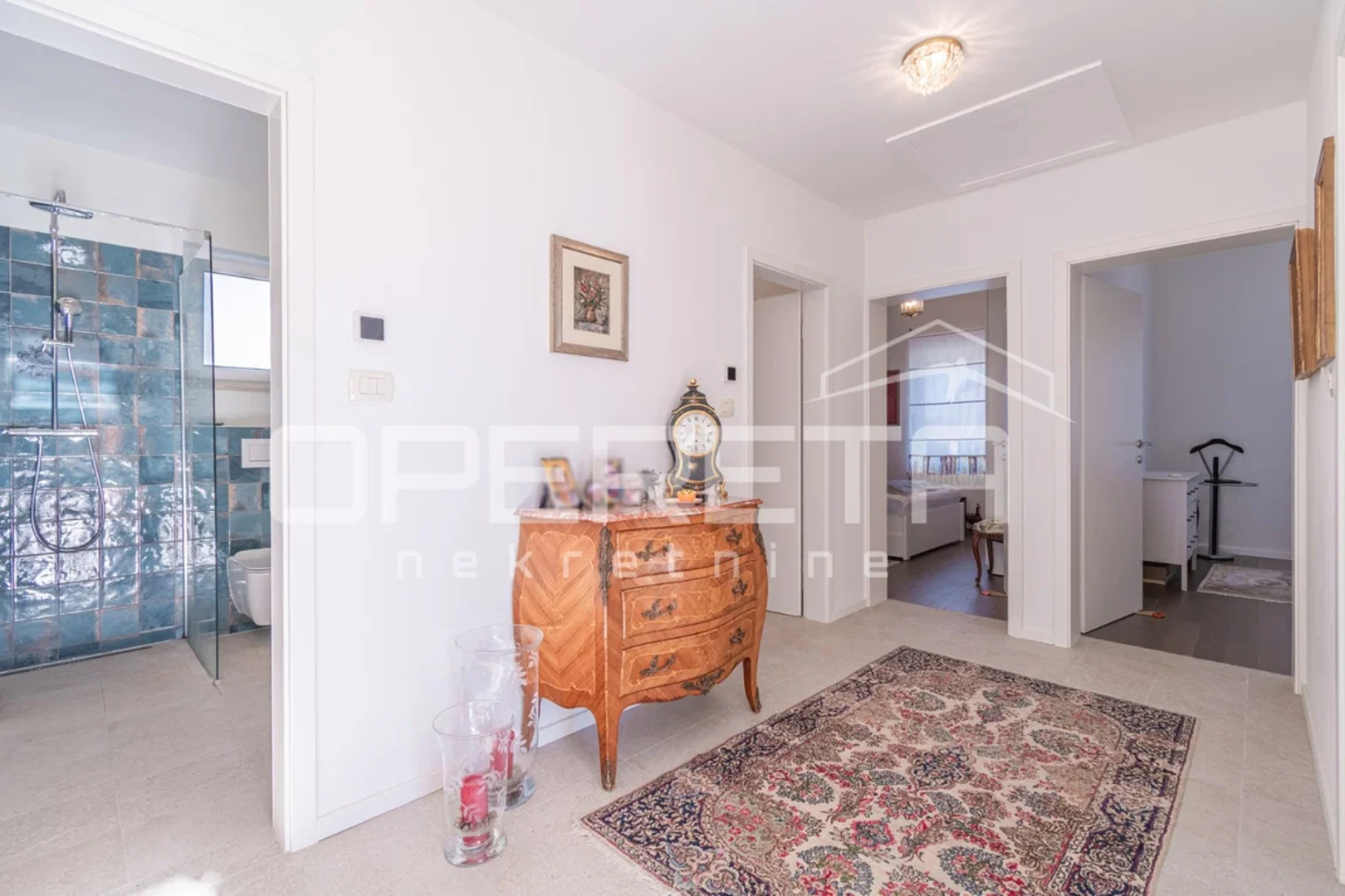Ulaz vodi u prostrani hodnik kojim se dolazi u open space dnevno područje. Dnevni boravak, kuhinja i blagovaonica povezani su u skladnu cjelinu, ispunjenu prirodnim svjetlom i toplinom.