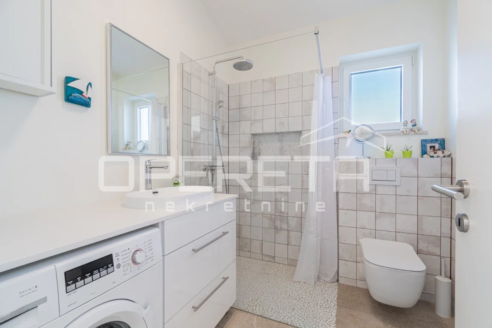 Kuća stambene površine 106 m² nalazi se na lijepo uređenoj parceli od 590 m², stvarajući ugodan prostor za boravak tijekom cijele godine.