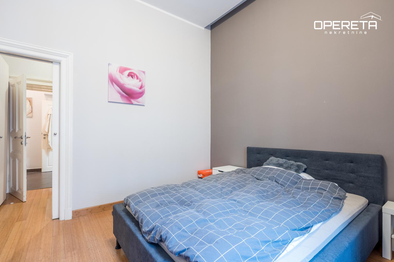 Sastoji se od ulaznog prostora, dnevnog boravka, kuhinje, blagovaonice, dvije prostrane spavaće sobe od kojih jedna ima vlastiti walkin ormar, dok je drugu moguće pregraditi u dvije manje sobe, te kupaonice