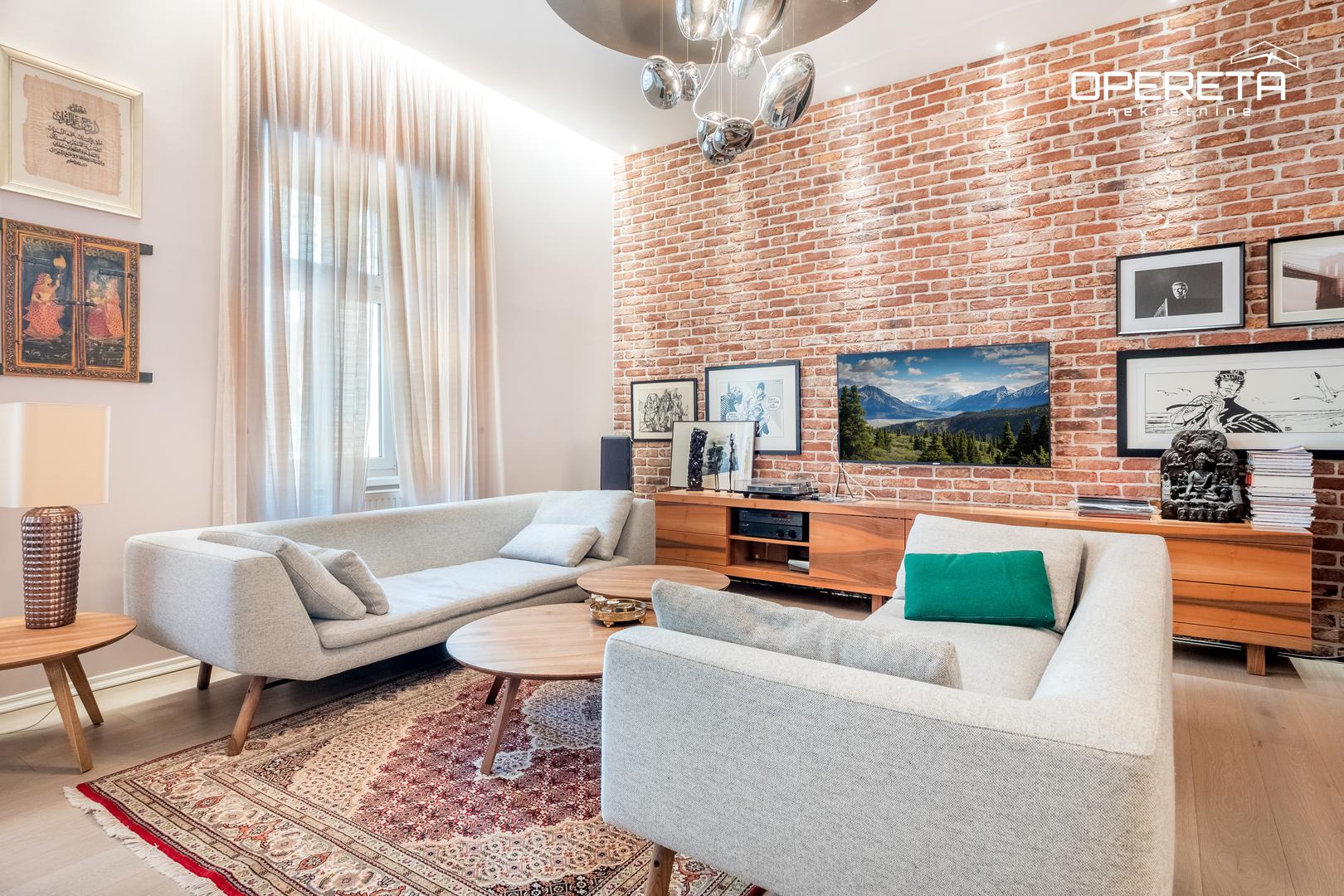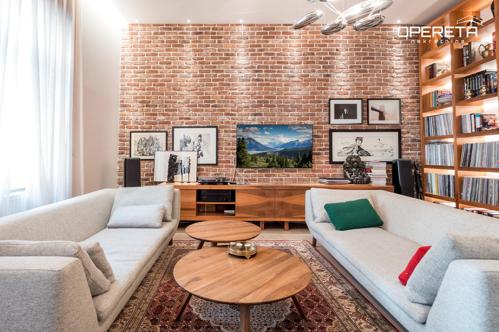 Prostrani dnevni boravak ističe se kao centralni dio stana – prostor u kojem je svaki detalj pažljivo biran i usklađen, stvarajući dojam luksuza i posebne atmosfere.